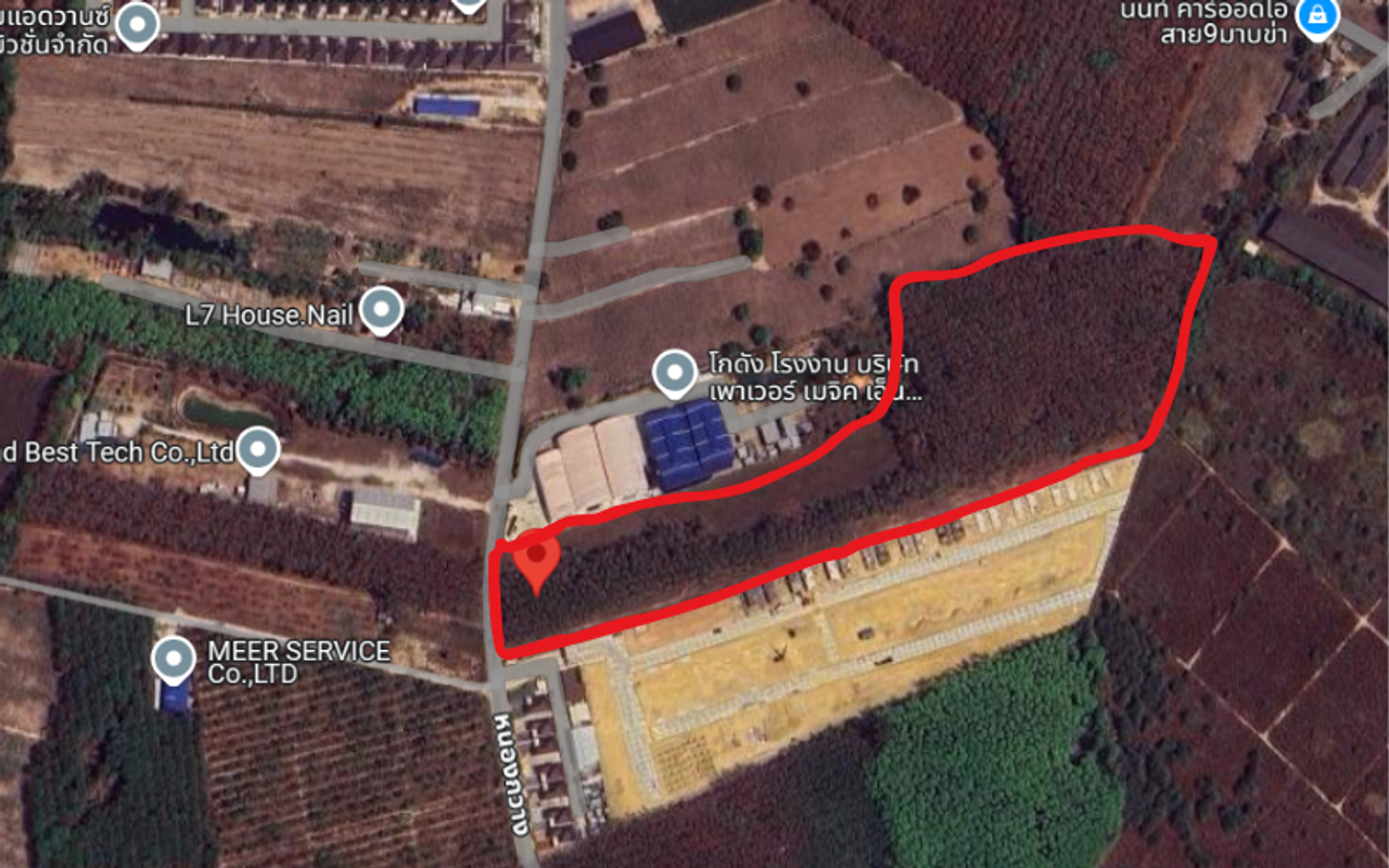 Prime land for sale by owner – total area of 25 rai, located near the Mapkha intersection in Rayong, within the high-potential EEC zone. Ideal for industrial, commercial, or investment purposes.