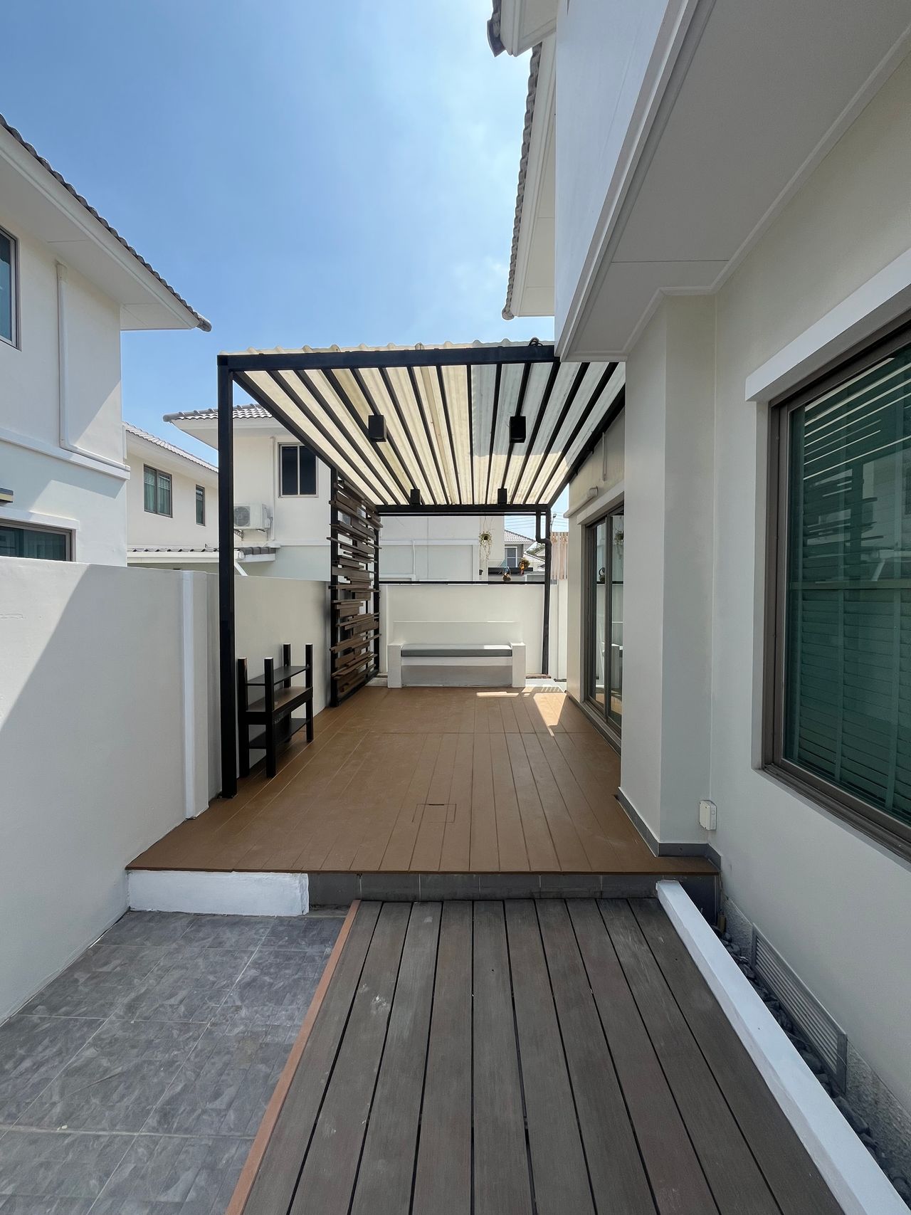- บริเวณลานซักล้างและด้านหลังบ้านต่อเติมระแนงบังสายตาเพื่อเพิ่มความเป็นส่วนตัว