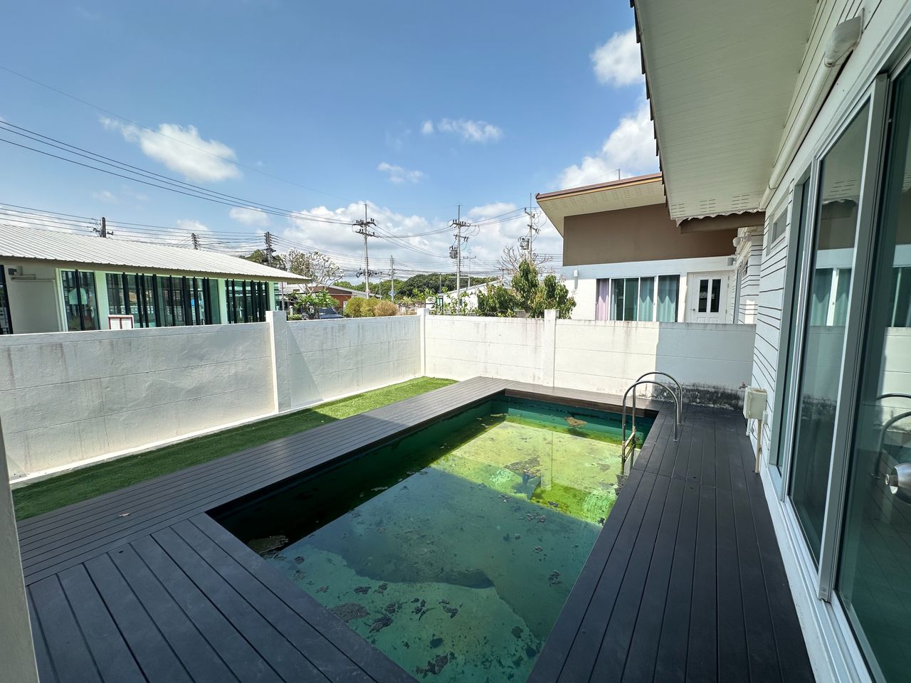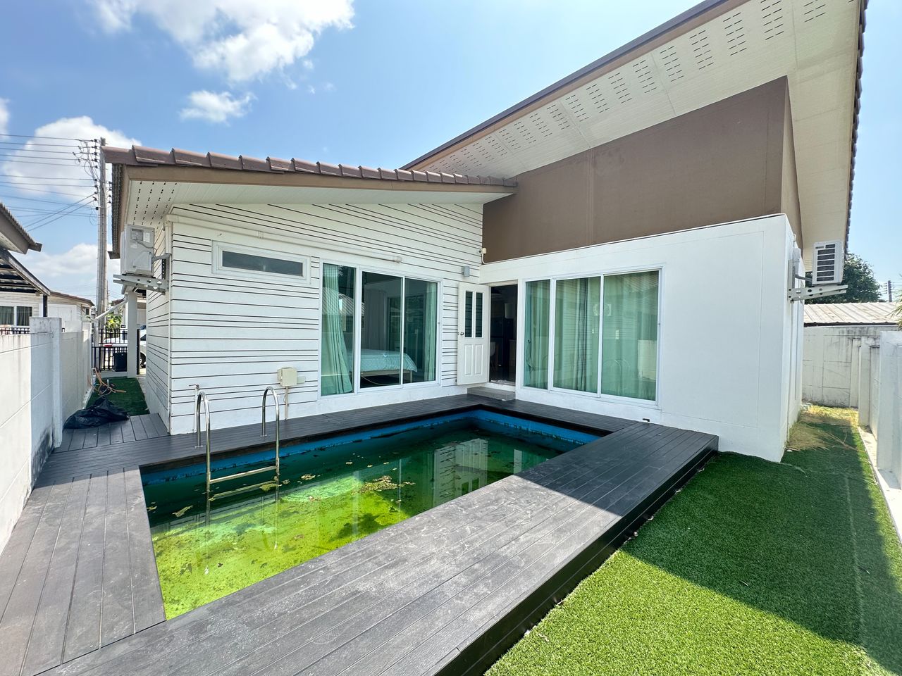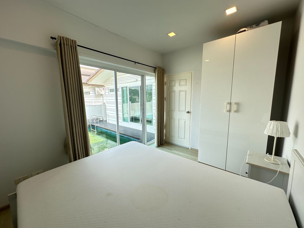 ให้เช่าบ้านพูลวิลล่า 2 ห้องนอน 2 ห้องน้ำ จอดรถ 2 คัน พร้อมเฟอร์นิเจอร์ เครื่องใช้ไฟฟ้า ต่อเติมหลังคาจอดรถ มีสระว่ายน้ำส่วนตัว