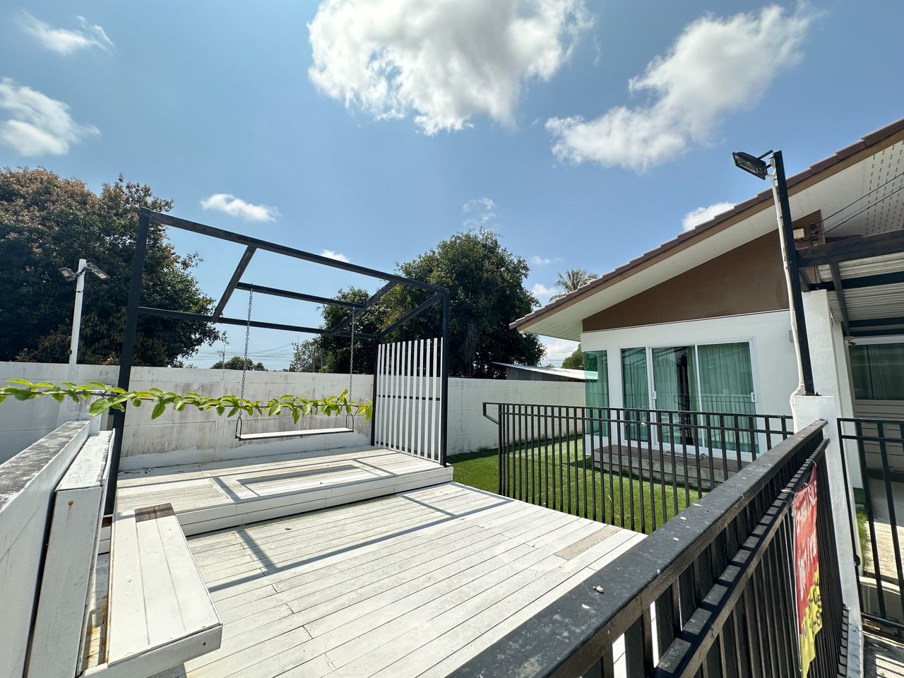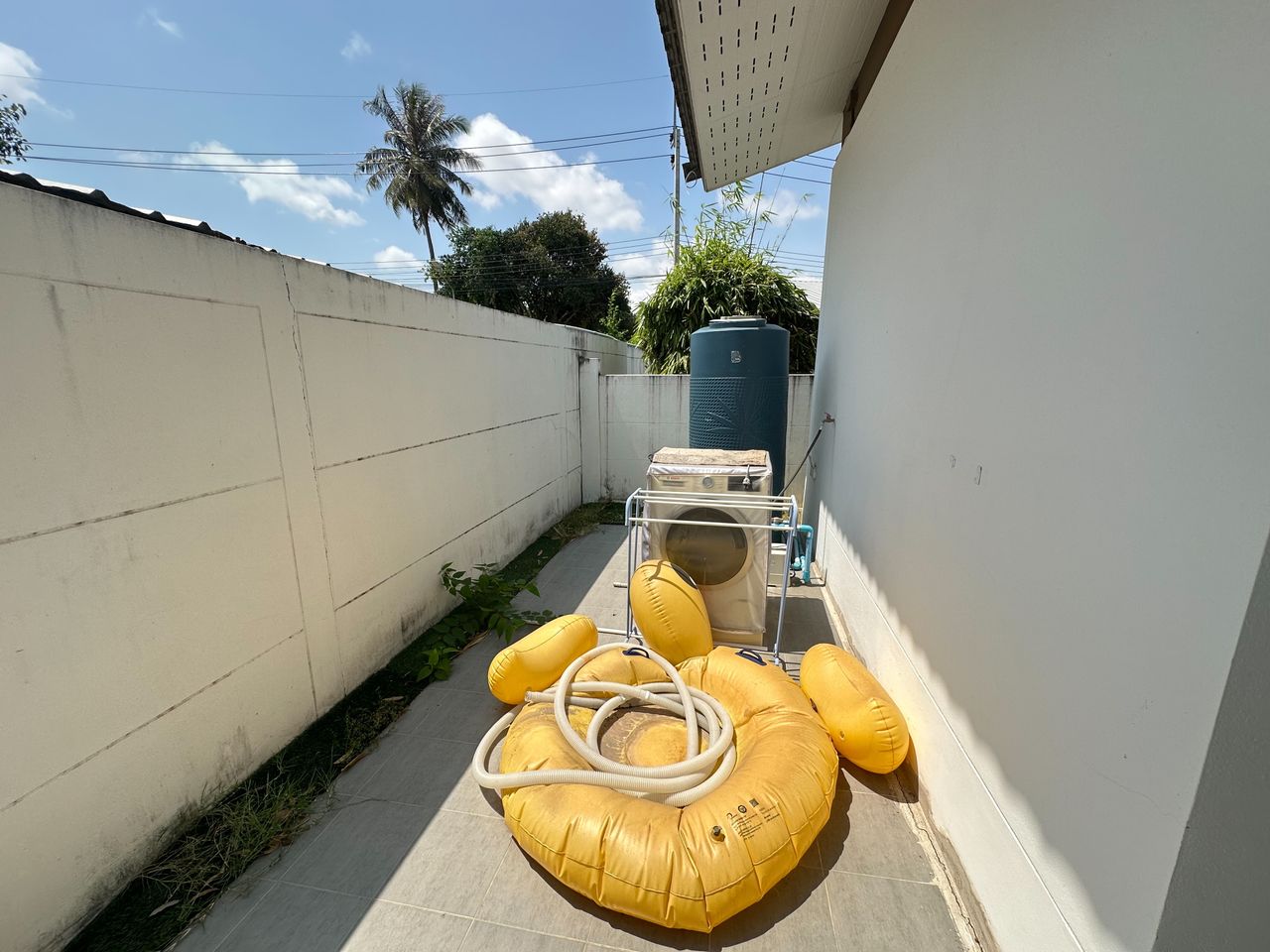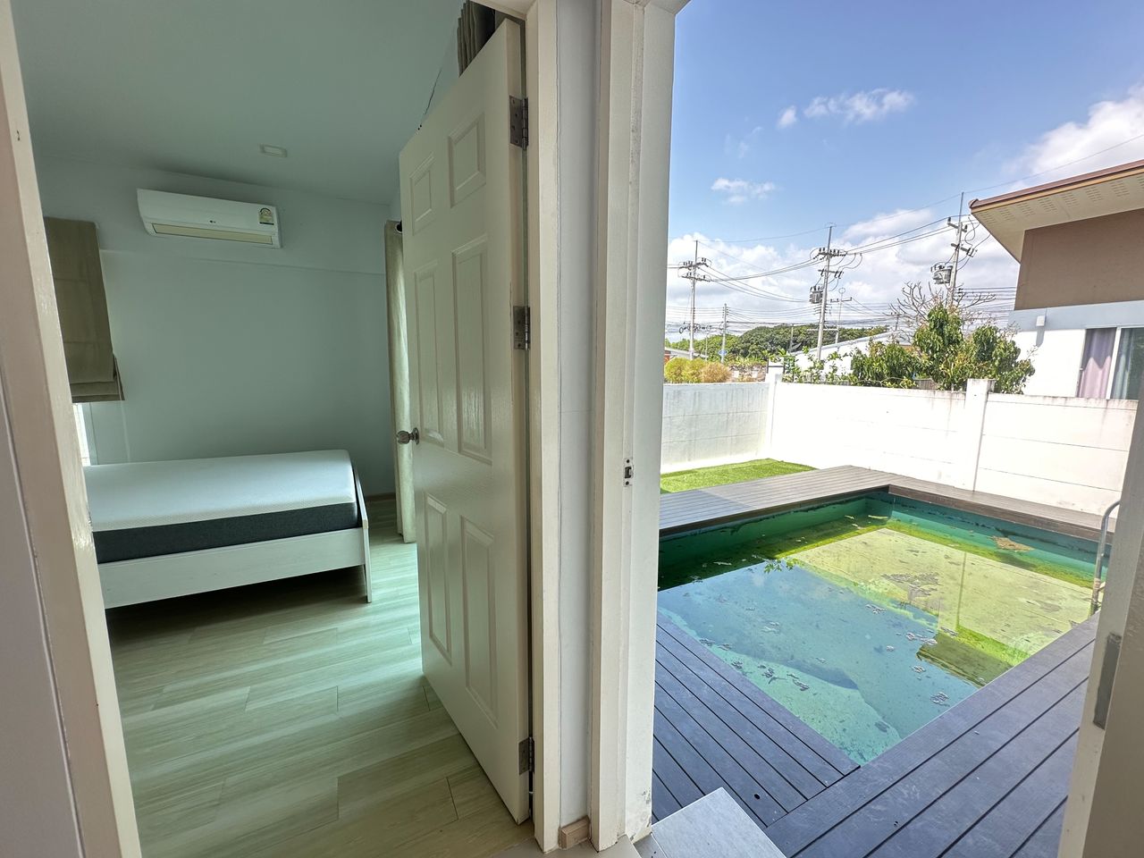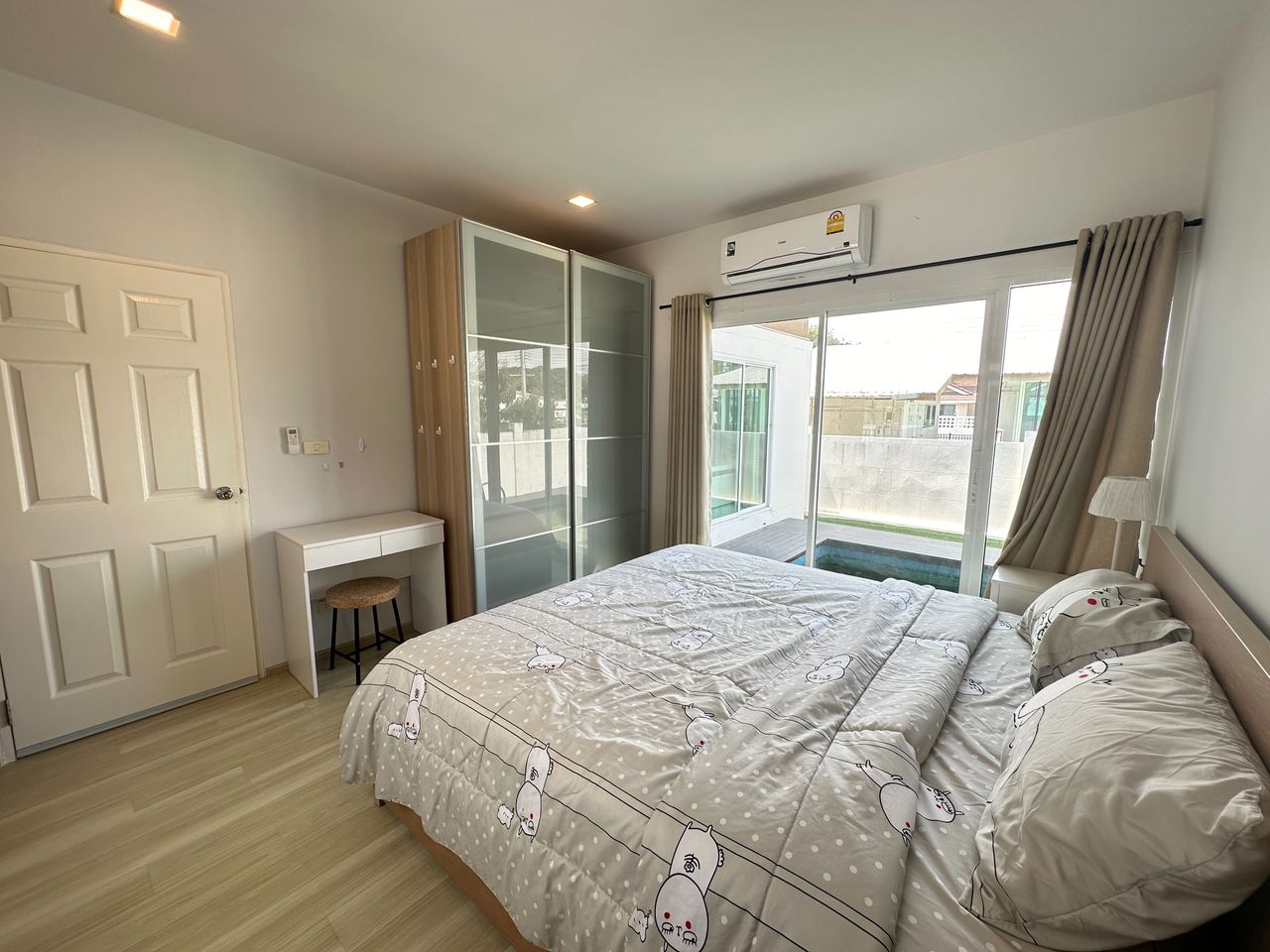 ให้เช่าบ้านพูลวิลล่า 2 ห้องนอน 2 ห้องน้ำ จอดรถ 2 คัน พร้อมเฟอร์นิเจอร์ เครื่องใช้ไฟฟ้า ต่อเติมหลังคาจอดรถ มีสระว่ายน้ำส่วนตัว