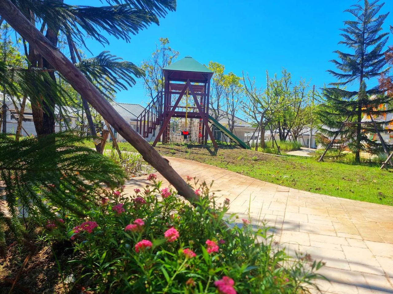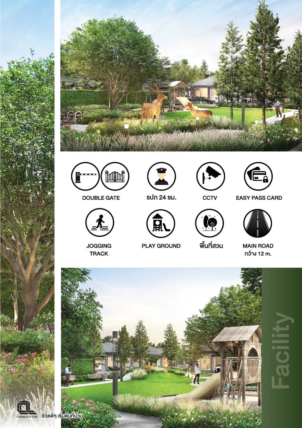 สิ่งอำนวยความสะดวกครบครัน ร้านสะดวกซื้อมากมาย ถนนโครงการกว้าง12m เชื่อมต่อทุกเส้นทาง ระบบรักษาความปลอดภัยเข้มงวด 2ชั้น สนามเด็กเล่นขนาดใหญ่ สิ่งแวดล้อมสวยงาม วิวภูเขา น้ำไม่ท่วม