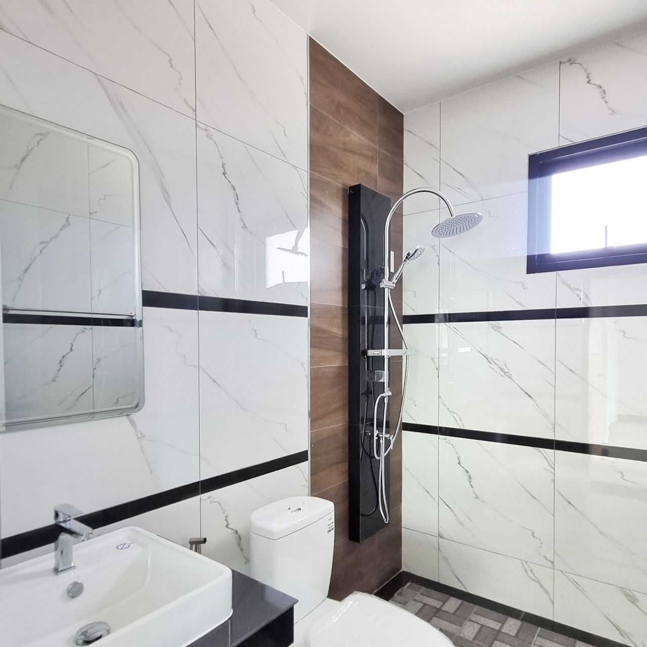 ผนังอิฐมวลเบา พร้อมคัดสรรวัสดุคุณภาพ อาทิ COTTO , SCG , TOA , กระเบื้องยาง SPC