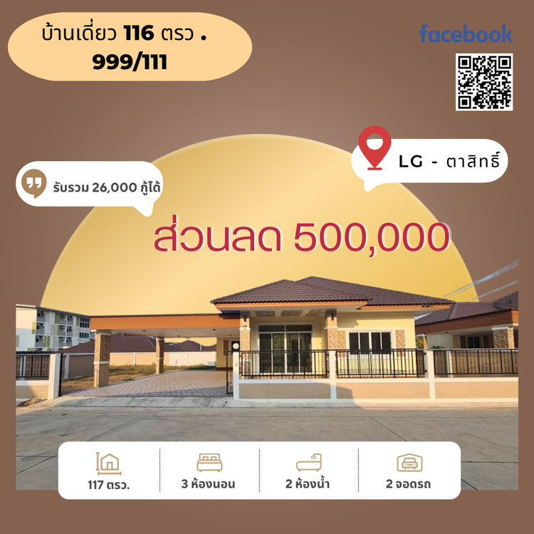 หลังใหญ่ 2 นอน 1 น้ำ 2 จอดรถ