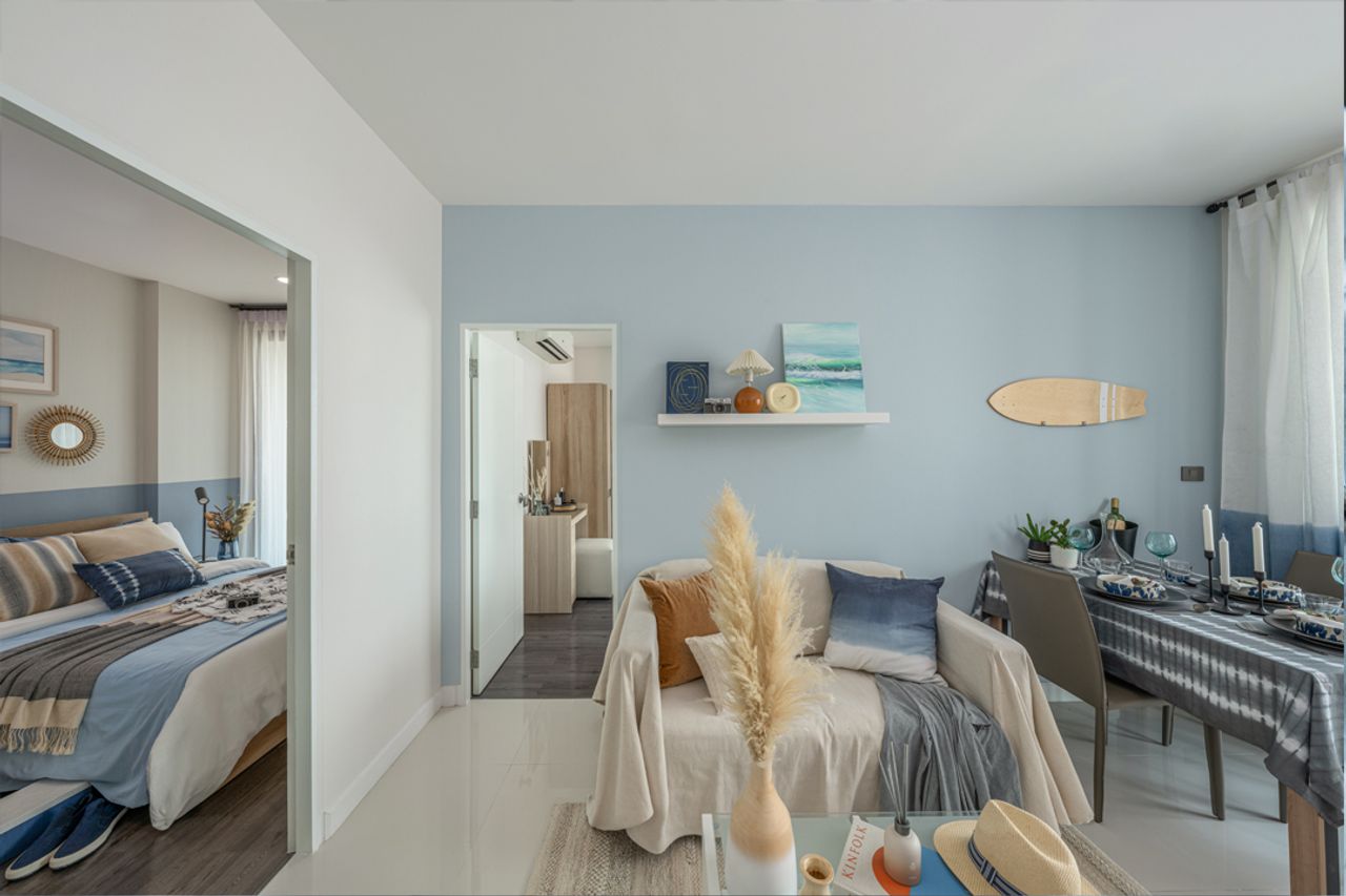 โครงการมีห้อง ขนาด 1 ห้องนอน พื้นที่ใช้สอย 31-54 ตารางเมตร ภายในห้องโปร่งโล่ง ลักษณะเป็น Open Plan เน้นการใช้งานคล่องตัว เชื่อมต่อกันเป็นอย่างดี แบ่งสัดส่วนการใช้งานไว้รองรับผู้อยู่อาศัยได้ครบ จุดเด่นคือห้องนอนและระเบียงอยู่มุมที่ ชมวิวทะเลและวิวแม่น้ำ ได้แบบ 180 องศา ระเบียงกว้างขว้าง เหมาะกับการออกมานั่งเล่น พักผ่อน ชมวิวแม่น้ำ และทะเล
