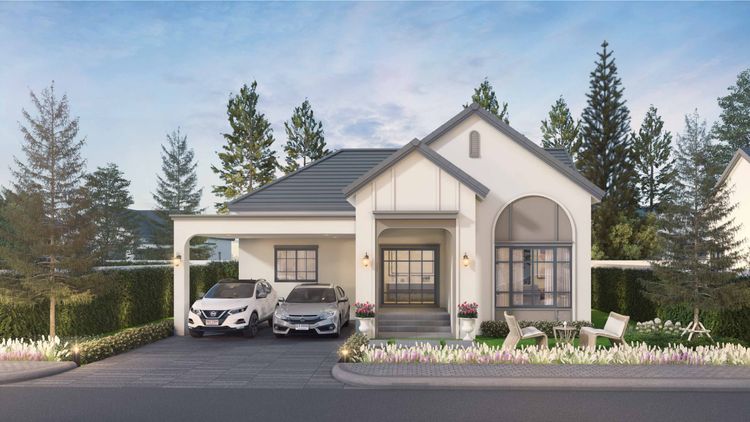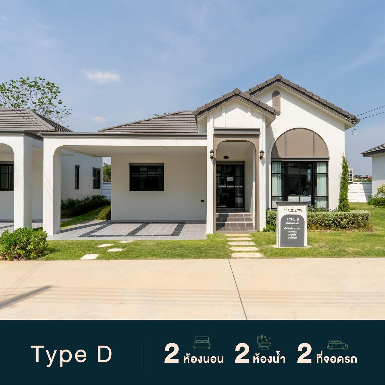 ครอบครัวขนาดกลาง ต้องการความเป็นส่วนตัว มีพื้นที่รอบบ้าน 𝐓𝐲𝐩𝐞 𝐃 : บ้านอิสระชั้นเดียว 2 ห้องนอน 2 ห้องน้ำ ที่จอดรถ 2 คัน