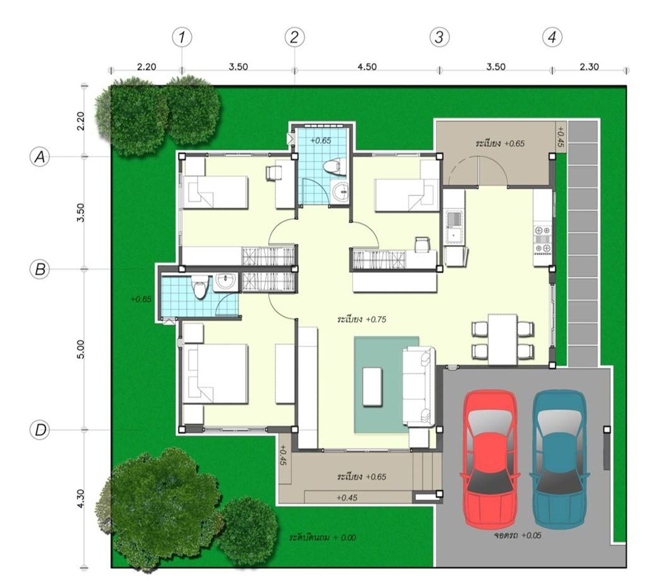 บ้านเดี่ยวชั้นเดียว 3 ห้องนอน 2 ห้องน้ำ พร้อมส่วนรับแขก