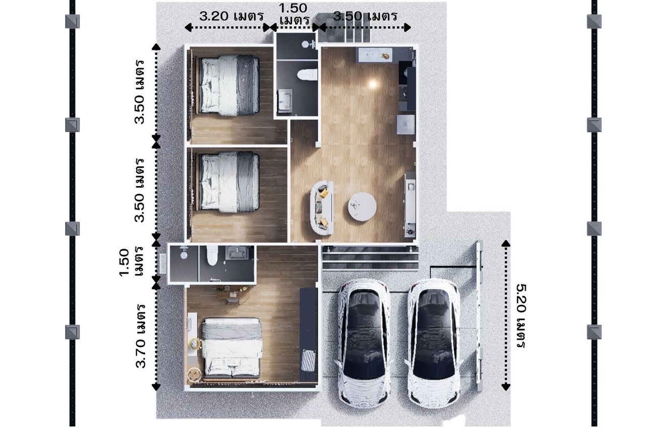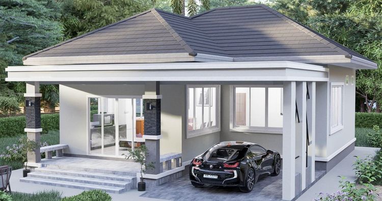 บ้านเดี่ยวชั้นเดียว สไตล์คอนเทมโพรารี่ หลังคาทรงปั้นหยา บ้านสวย ทำเลใช่ ราคาโดนใจ โซนนิคมพัฒนา