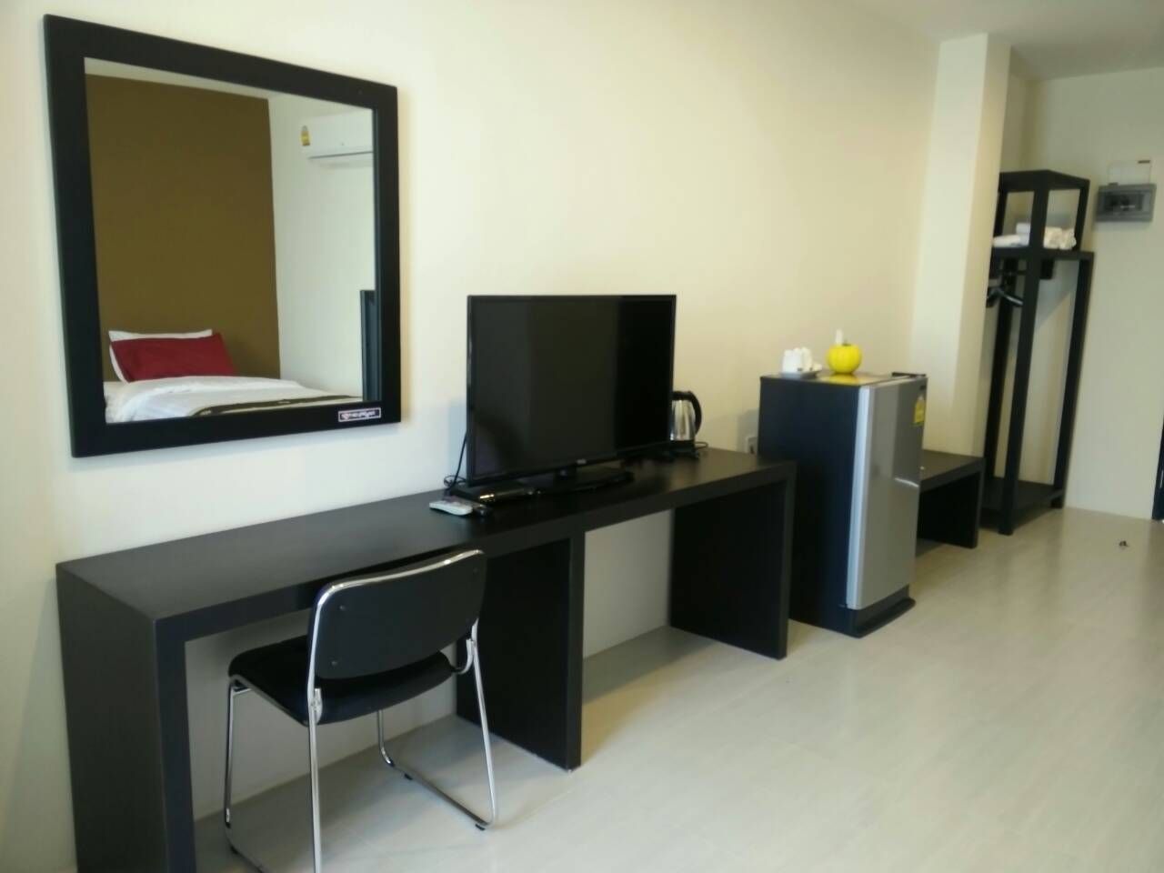 ในห้องมีตู้เย็น ทีวีเครื่องทำน้ำอุ่น แอร์ พัดลมเรียบร้อย