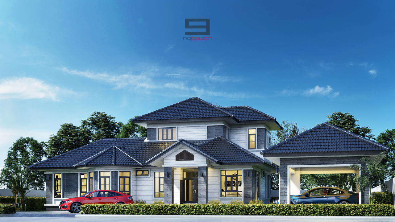-แบบบ้านชั้นครึ่ง หรือเรียกเป็น2ชั้นได้ ค่อนข้างใหญ่พอสมควร ชั้นบน มีห้องเดี่ยวส่วนตัว สไตล์ผสมผสานระหว่างร่วมสมัยกับคลาสสิค พื้นที่ใช้สอยรวม 257 ตร.ม. รวมโรงจอดรถ (ไม่รวมงานถนนบริเวณบ้าน) ฟังค์ชั่นแต่ละห้อง ดูได้ที่แปลนแต่ละชั้นในรูปภาพที่แนบ นะครับ หลังคาเป็นกระเบื้องซีแพคโมเนีย สีเทา