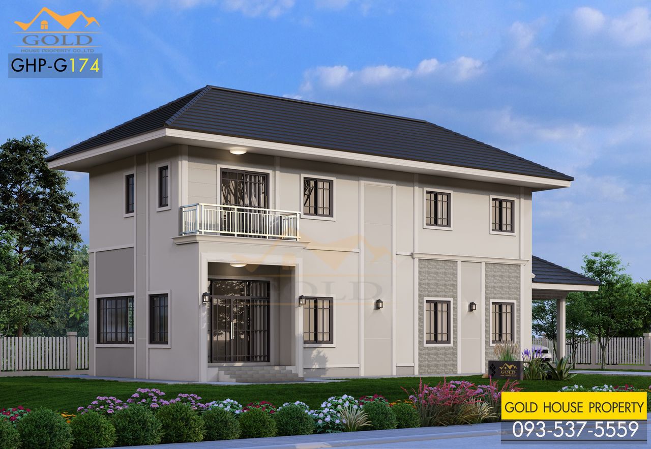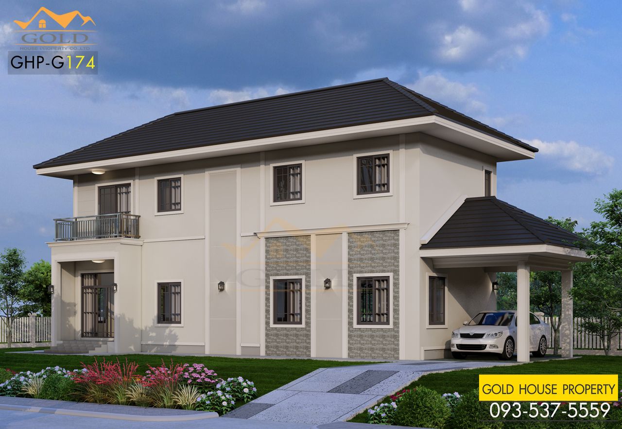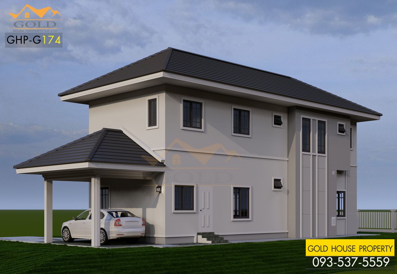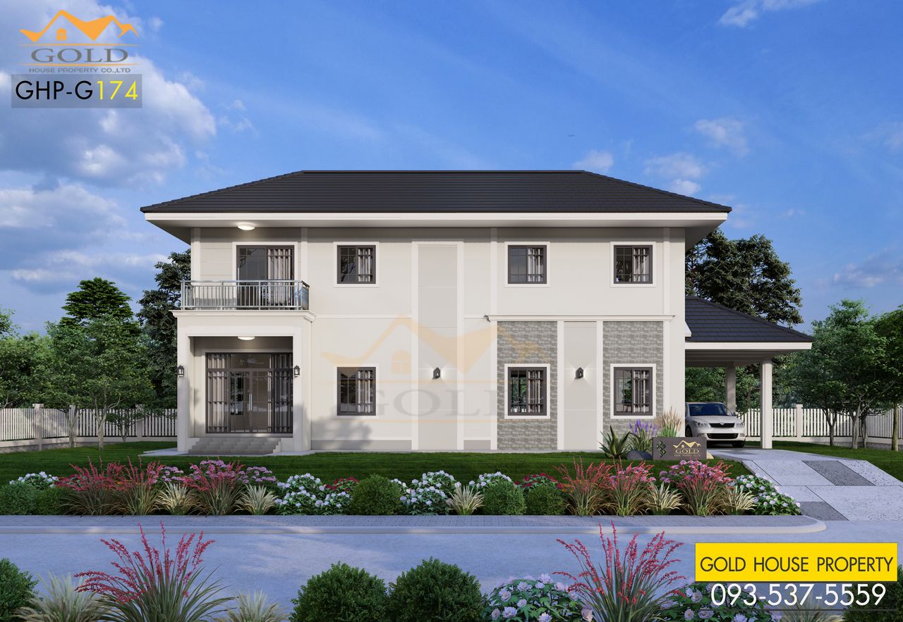 แบบบ้าน GHP-G174 คอนเทมโพรารี่ ฟังก์ชั่น : 2 ชั้น 4 ห้องนอน 3 ห้องน้ำ 1 ห้องครัว 1 ห้องรับแขก 1 ที่จอดรถ