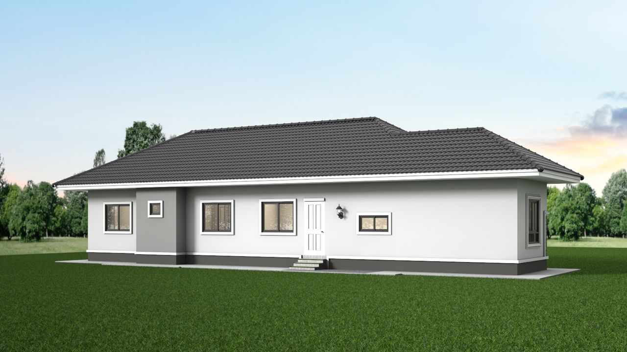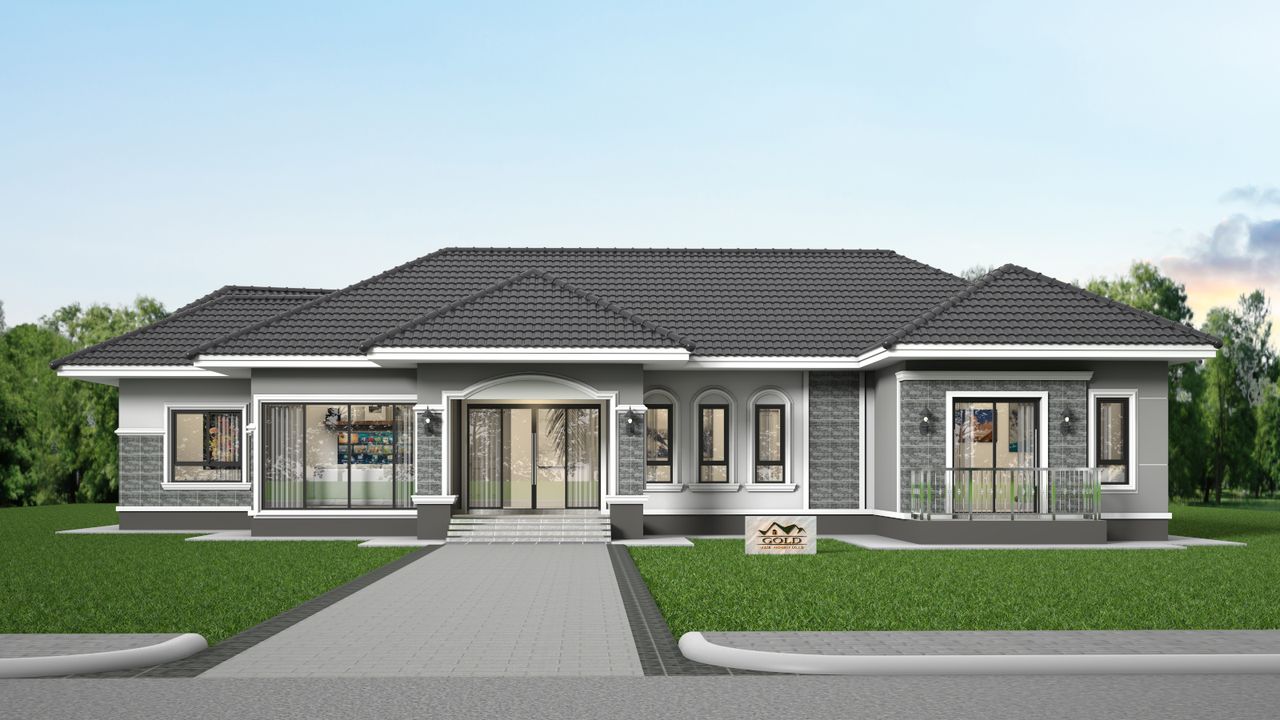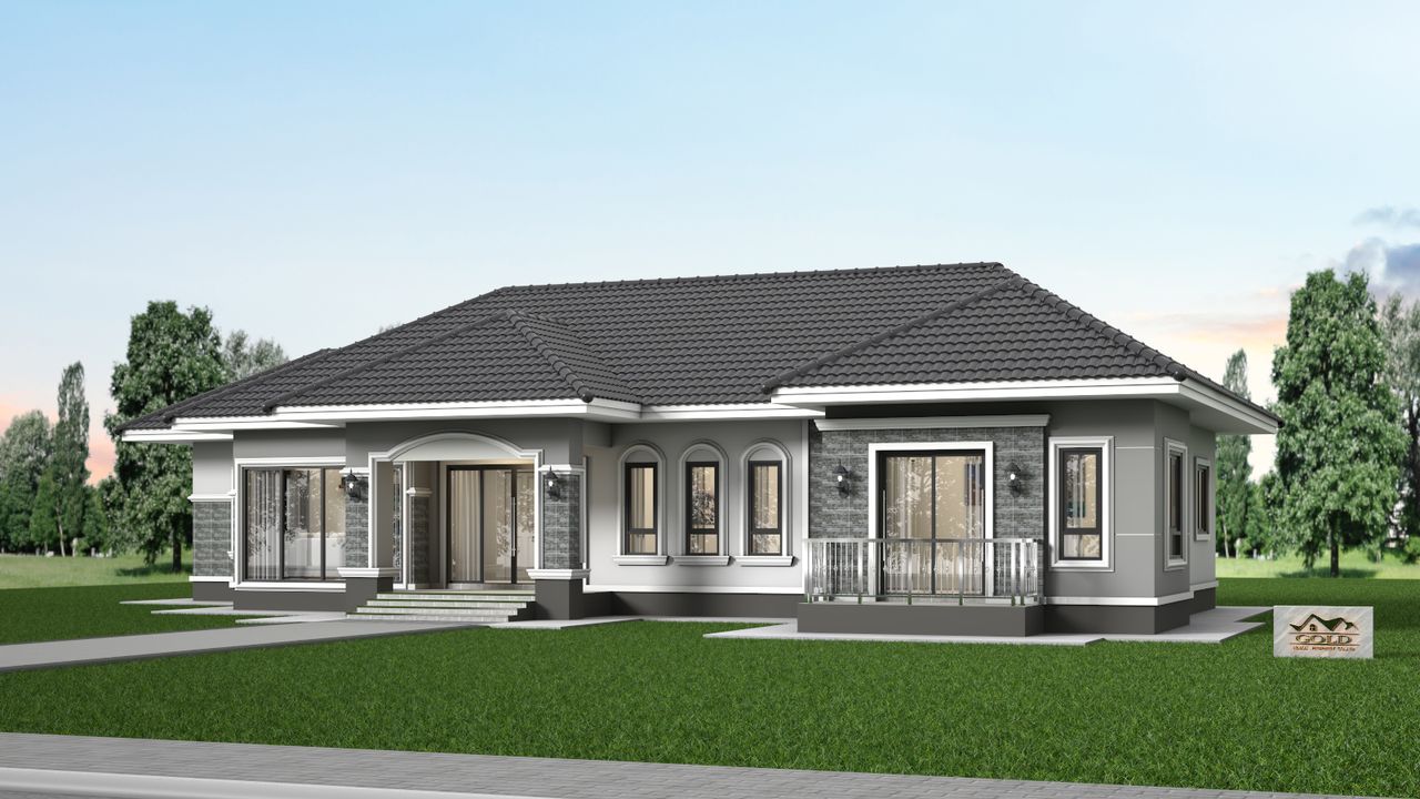 แบบบ้าน GHP-G145 คอนเทมโพรารี่ ฟังก์ชั่น : 1 ชั้น 4 ห้องนอน 2 ห้องน้ำ 1 ห้องครัว 1 ห้องรับแขก ไม่มีที่จอดรถ