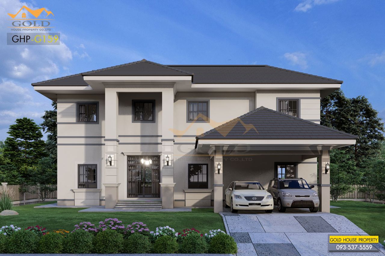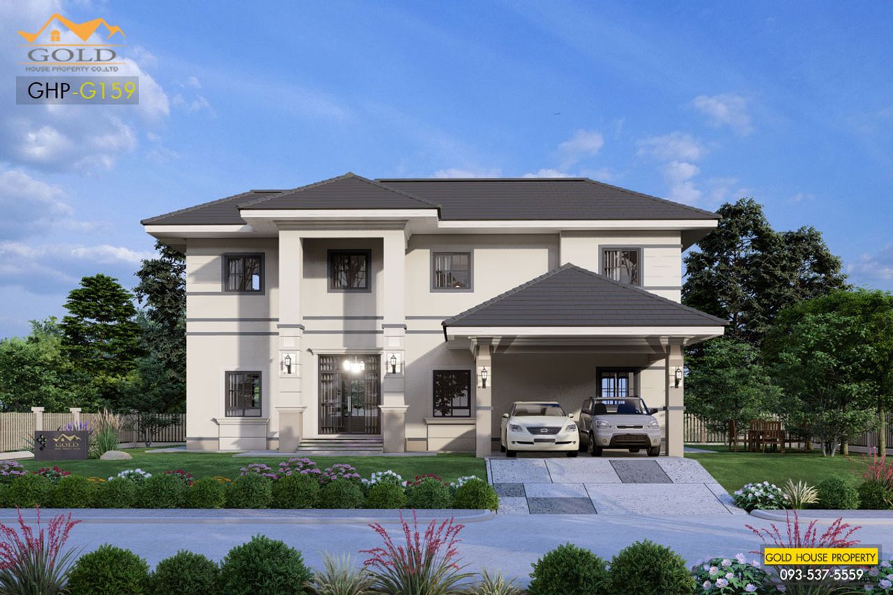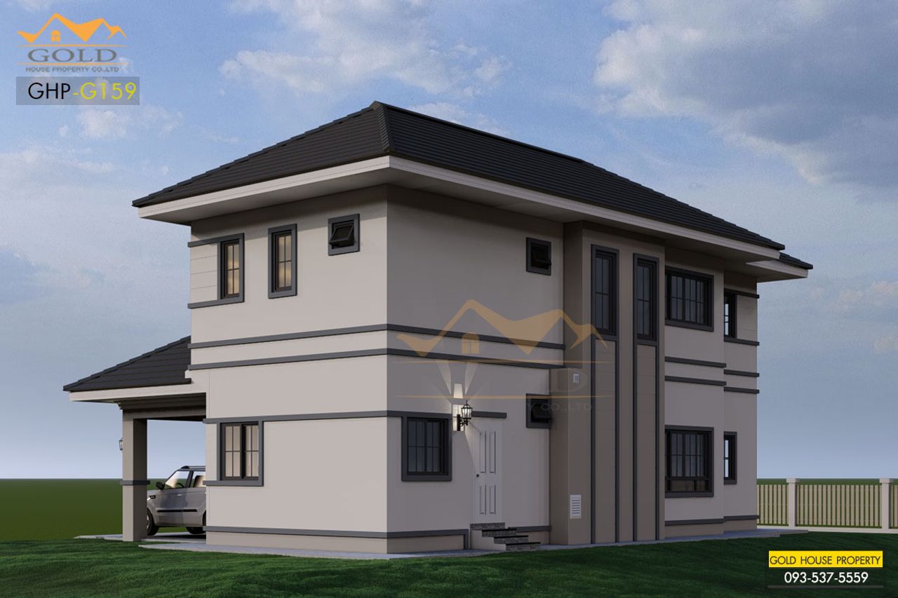 แบบบ้าน GHP-G159 คอนเทมโพรารี่ ฟังก์ชั่น : 2 ชั้น 4 ห้องนอน 3 ห้องน้ำ 1 ห้องครัว 1 ห้องรับแขก 2 ที่จอดรถ