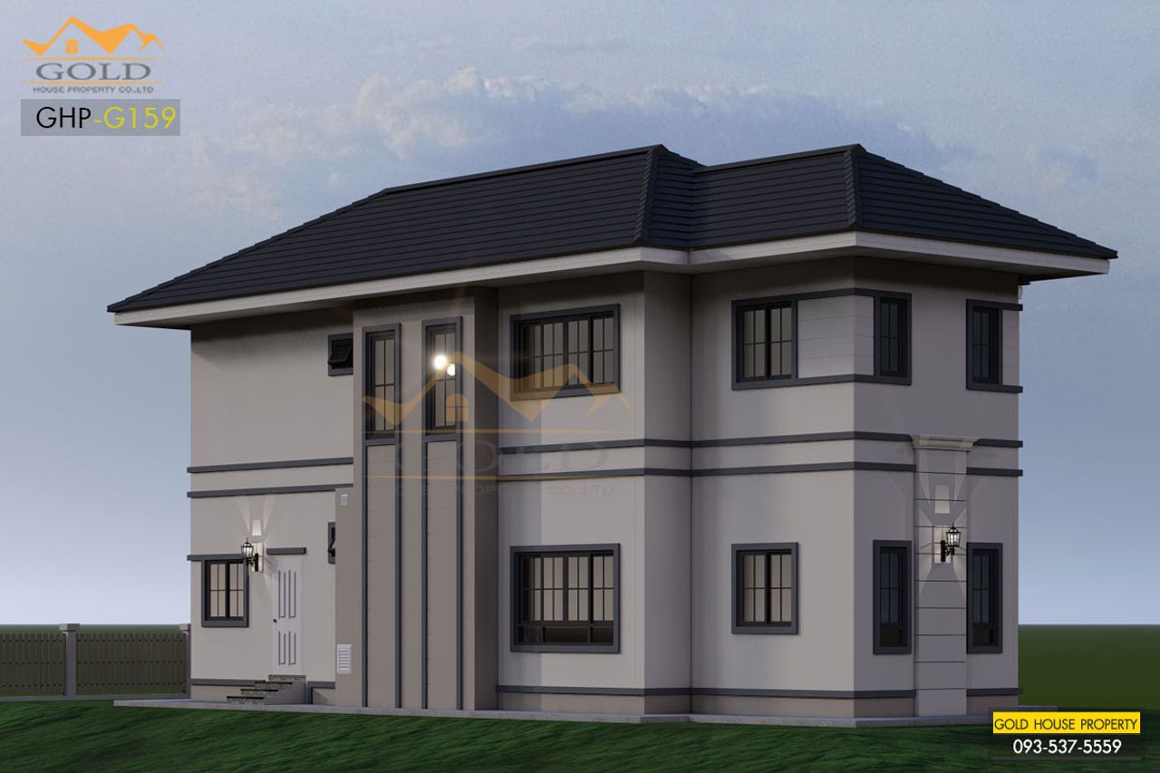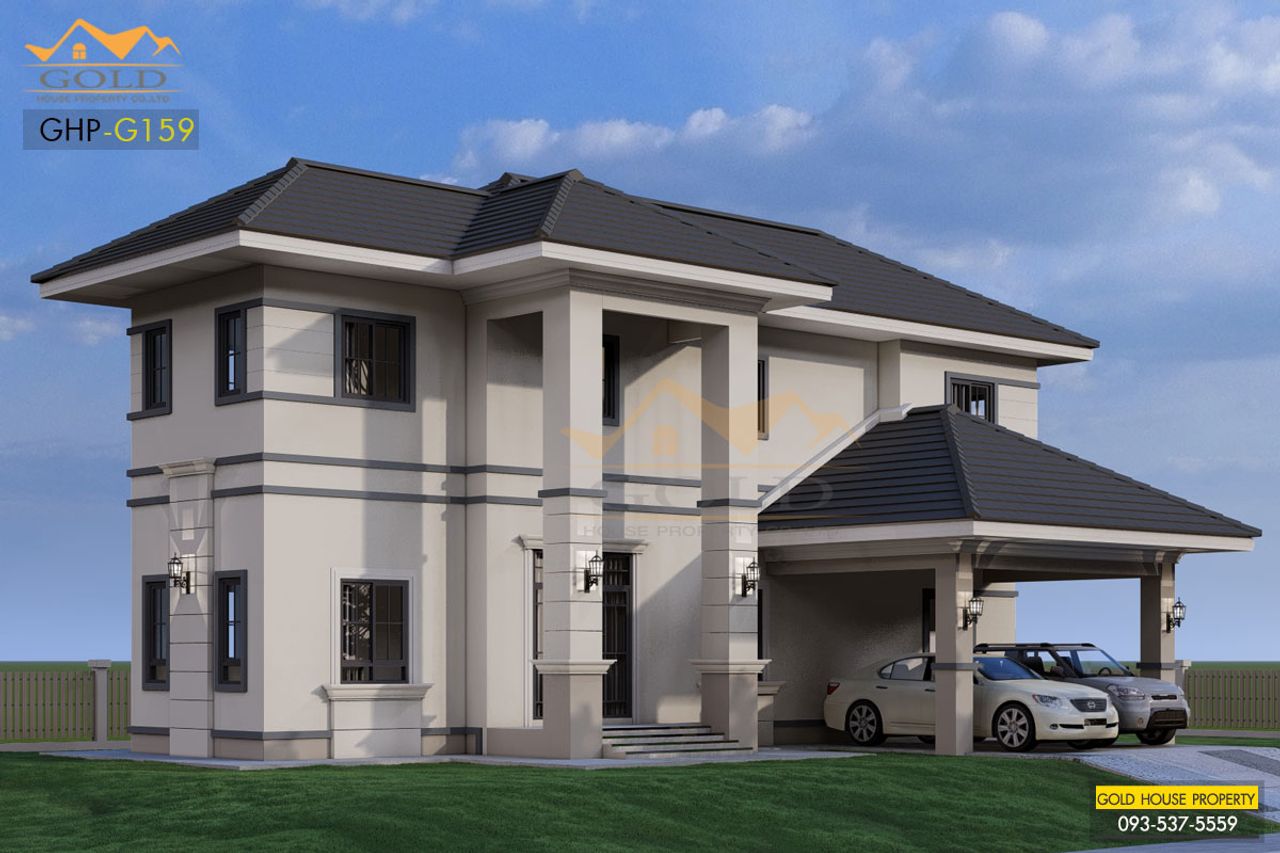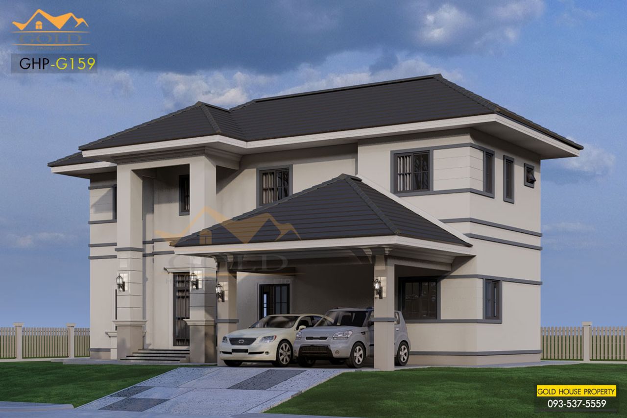 แบบบ้าน GHP-G159 คอนเทมโพรารี่ ฟังก์ชั่น : 2 ชั้น 4 ห้องนอน 3 ห้องน้ำ 1 ห้องครัว 1 ห้องรับแขก 2 ที่จอดรถ