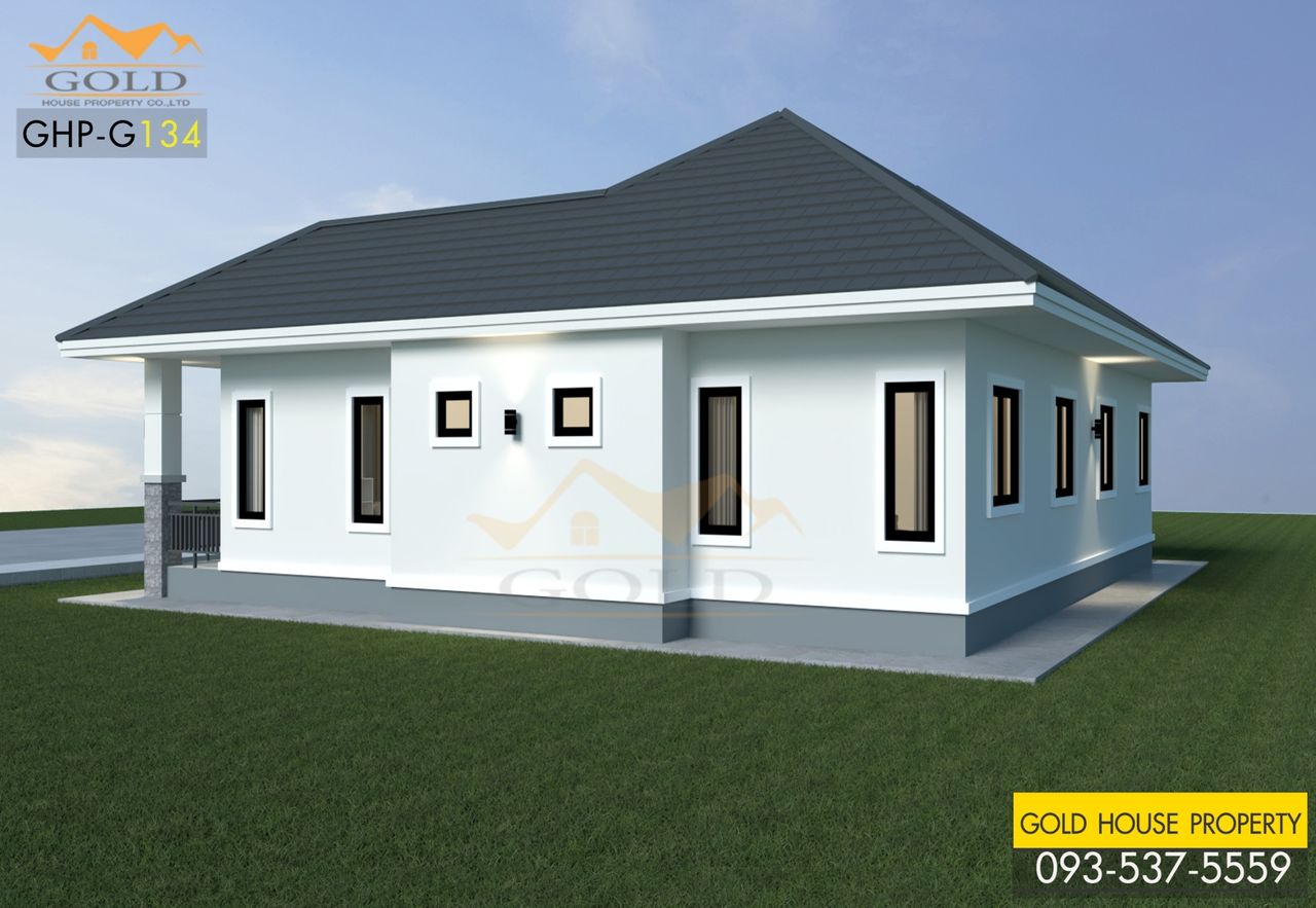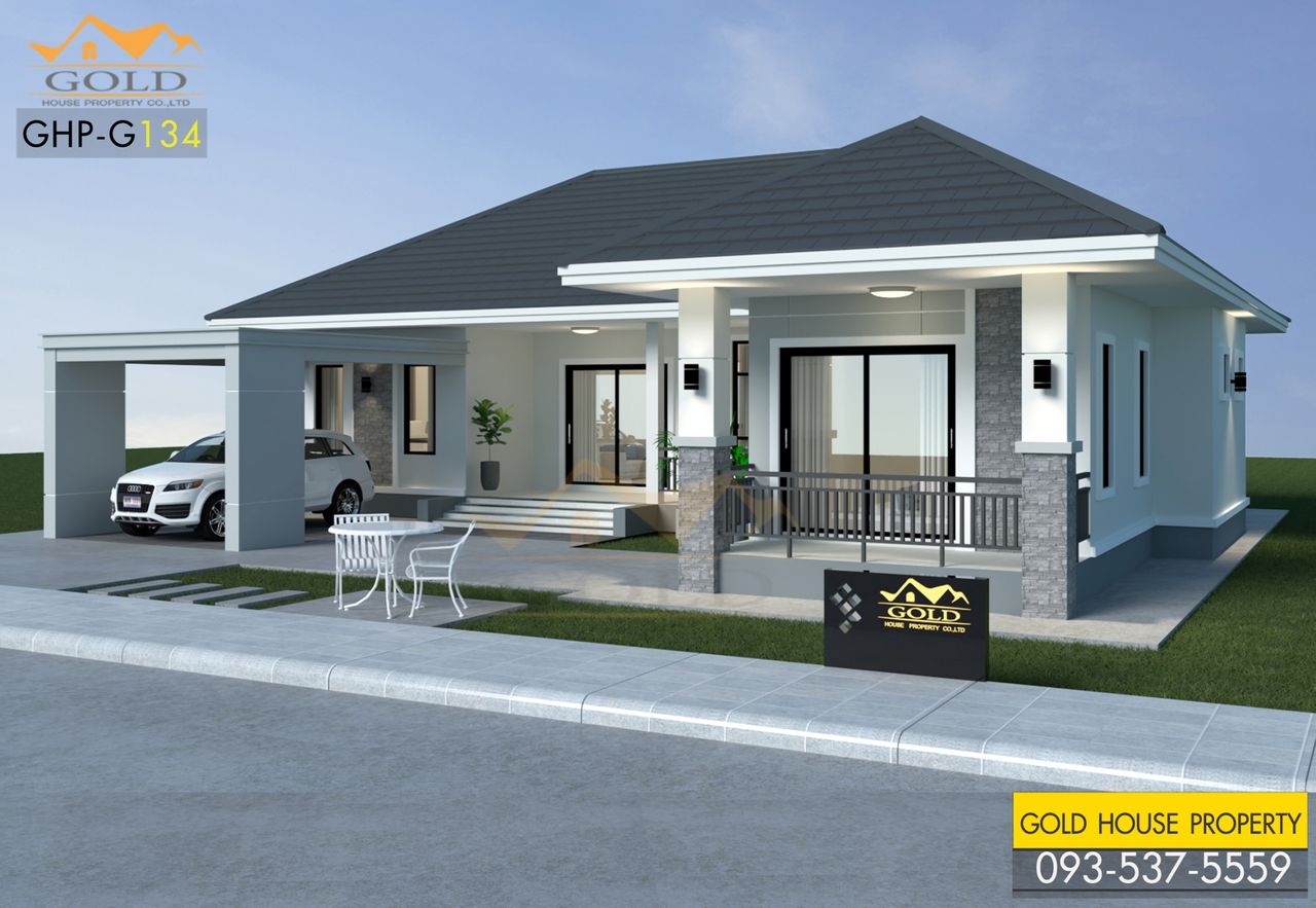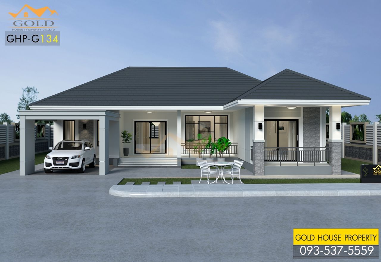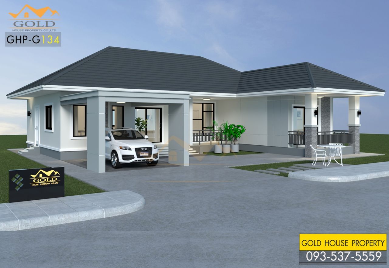 แบบบ้าน GHP-G134 คอนเทมโพรารี่ ฟังก์ชั่น : 1 ชั้น 3 ห้องนอน 2 ห้องน้ำ 1 ห้องครัว 2 ห้องรับแขก 1 ที่จอดรถ