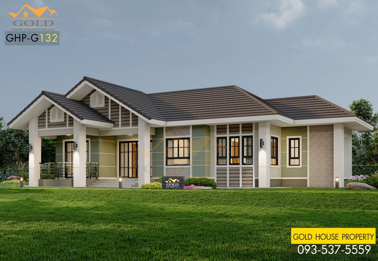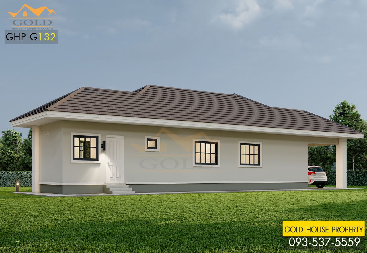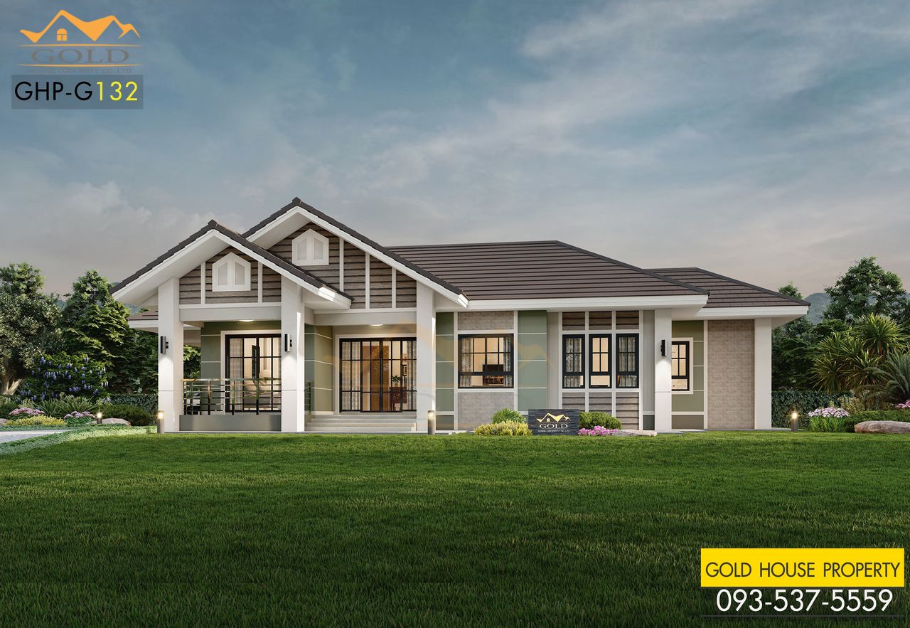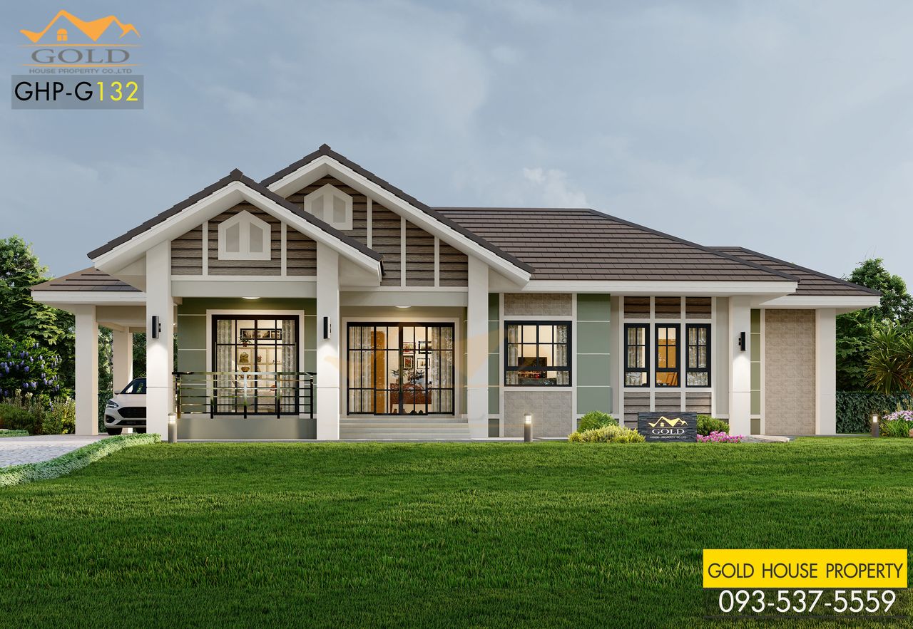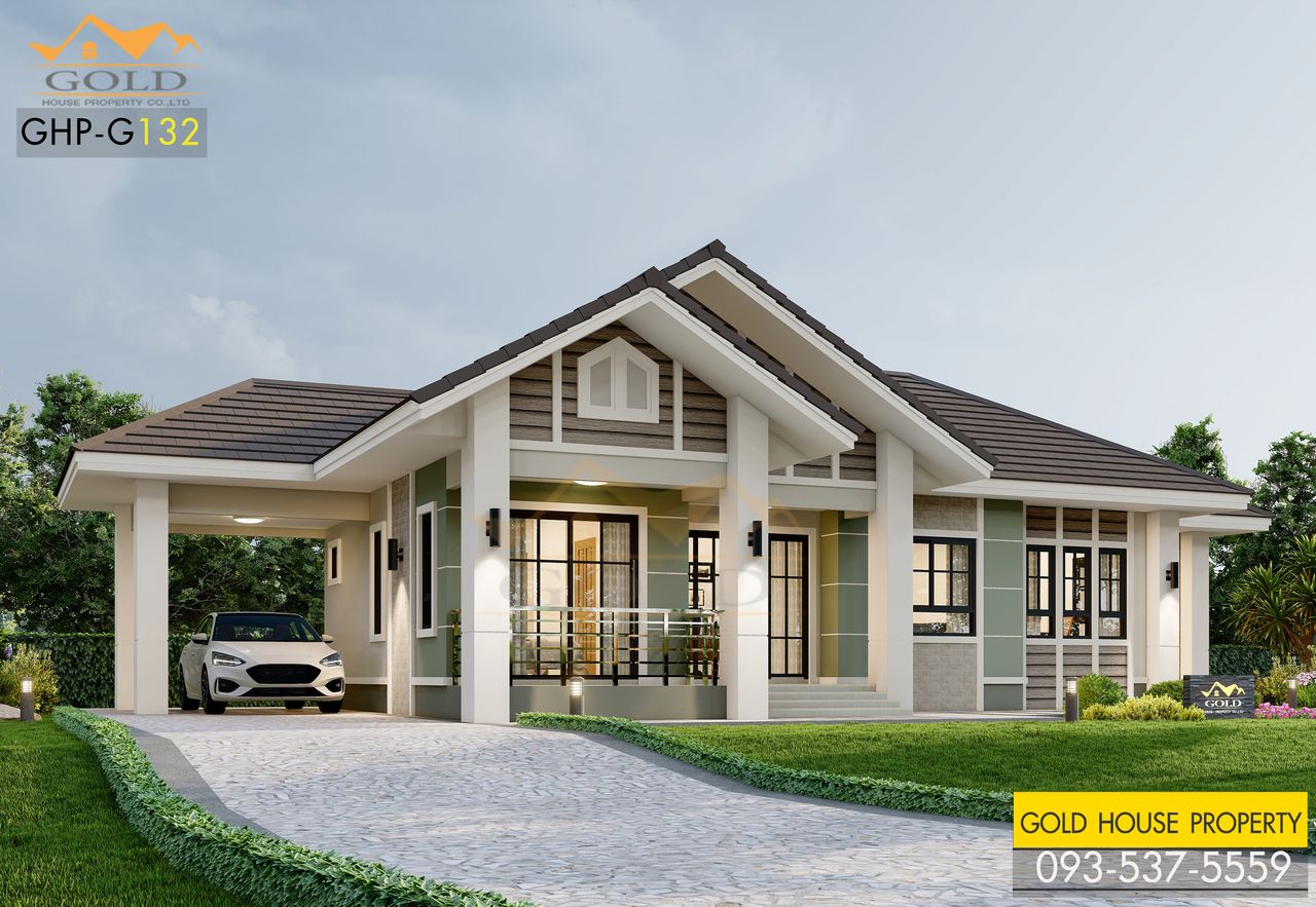 แบบบ้าน GHP-G132 อิงลิช คอตเทจ ฟังก์ชั่น : 1 ชั้น 3 ห้องนอน 2 ห้องน้ำ 1 ห้องครัว 1 ห้องรับแขก 1 ที่จอดรถ