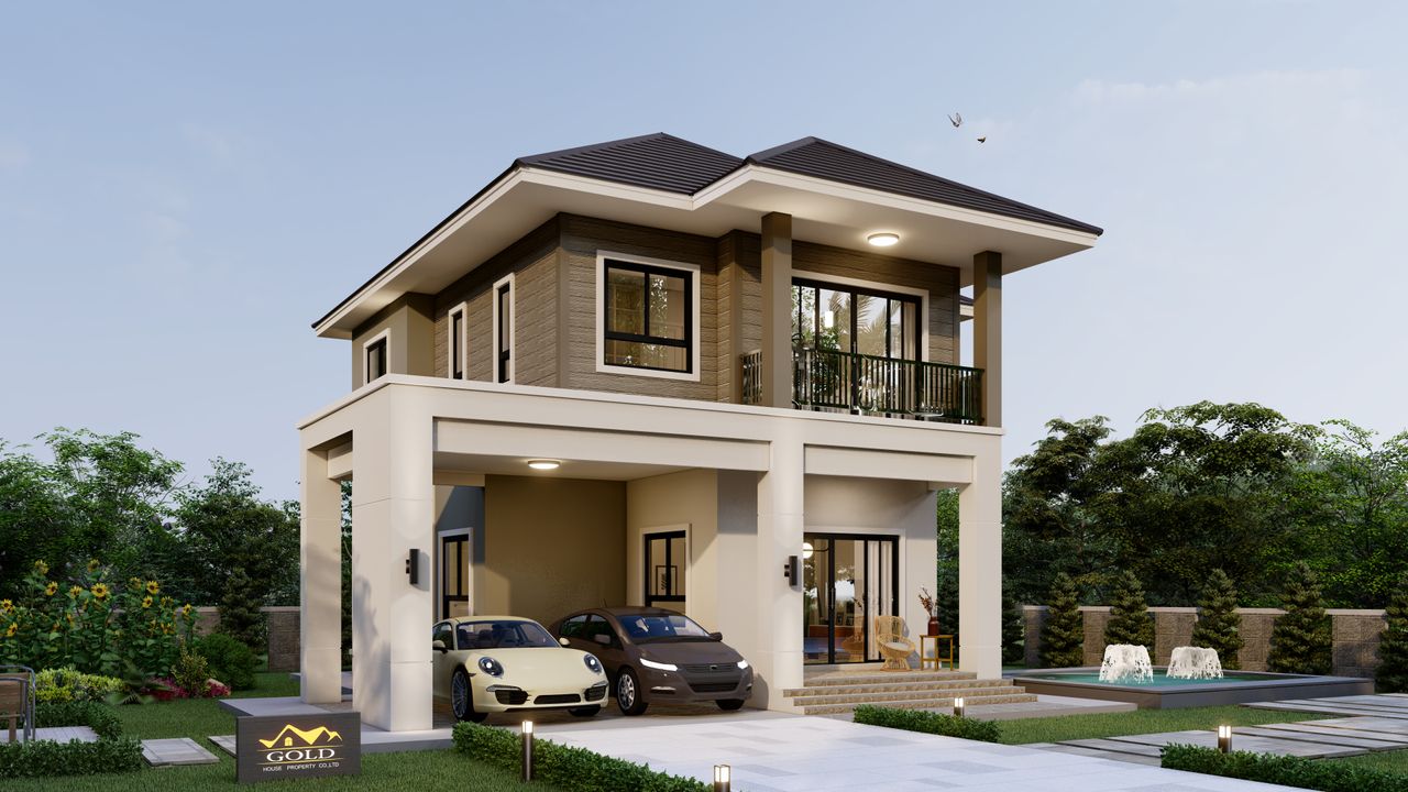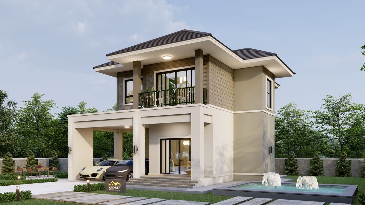 แบบบ้าน GHP-G153 โมเดิร์น คอนเทมโพรารี่ ฟังก์ชั่น : 2 ชั้น 3 ห้องนอน 2 ห้องน้ำ 1 ห้องครัว 1 ห้องรับแขก 2 ที่จอดรถ