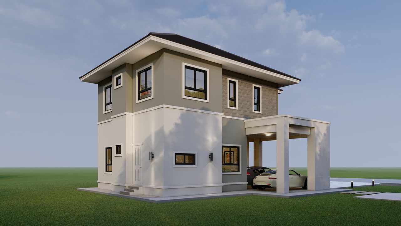 พื้นที่ใช้สอย :201.35 ตรม. ราคา 2.99 ลบ แบบบ้านสไตล์ Modern Contemporary Style