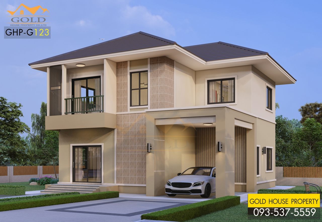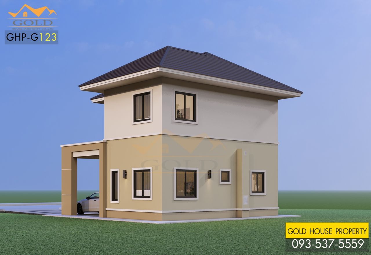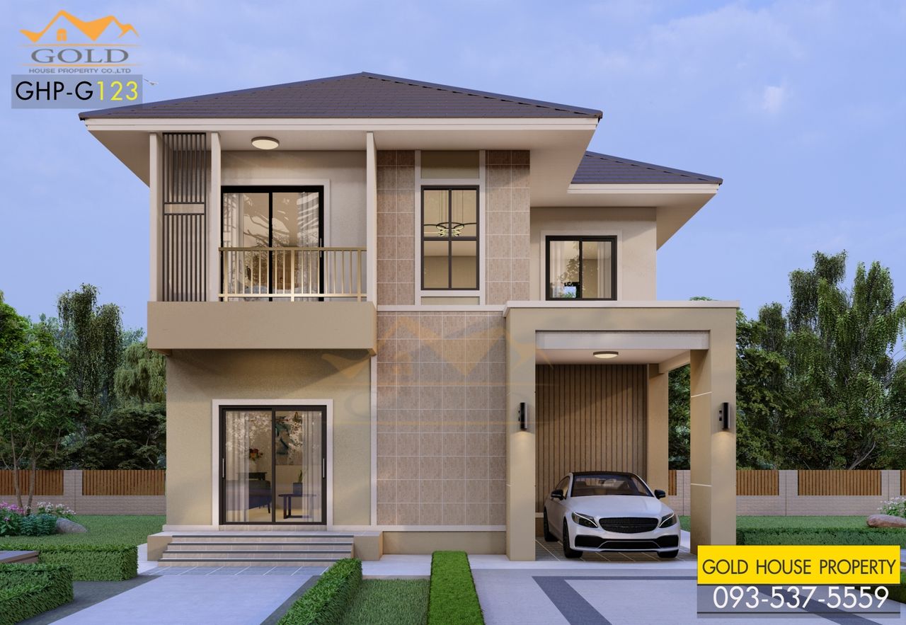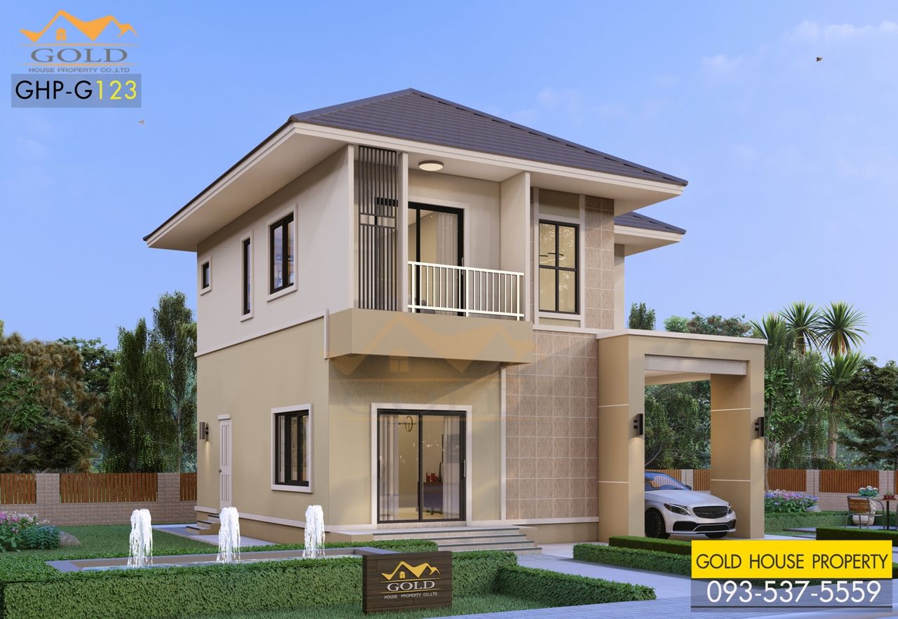 แบบบ้าน GHP-G123 โมเดิร์นคอนเทมโพรารี่ ฟังก์ชั่น : 2 ชั้น 3 ห้องนอน 2 ห้องน้ำ 1 ห้องครัว 1 ห้องรับแขก 1 ที่จอดรถ