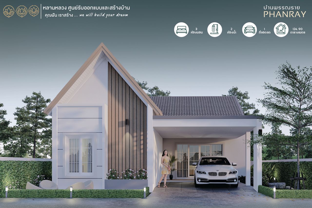 รับสร้างบ้านหลานหลวง บ้านชั้นเดียวสไตล์ นอร์ดิกมินิมอล 3ห้องนอน 2 ห้องน้ำ ชื่อแบบบ้าน พรรณราย