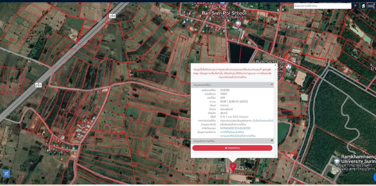 ขายที่ดิน ใกล้ ม.รามคำแหง ใกล้ถนนเลี่ยงเมือง ทุ่งโพธิ์ - เมืองสุรินทร์ - ท่าสว่าง