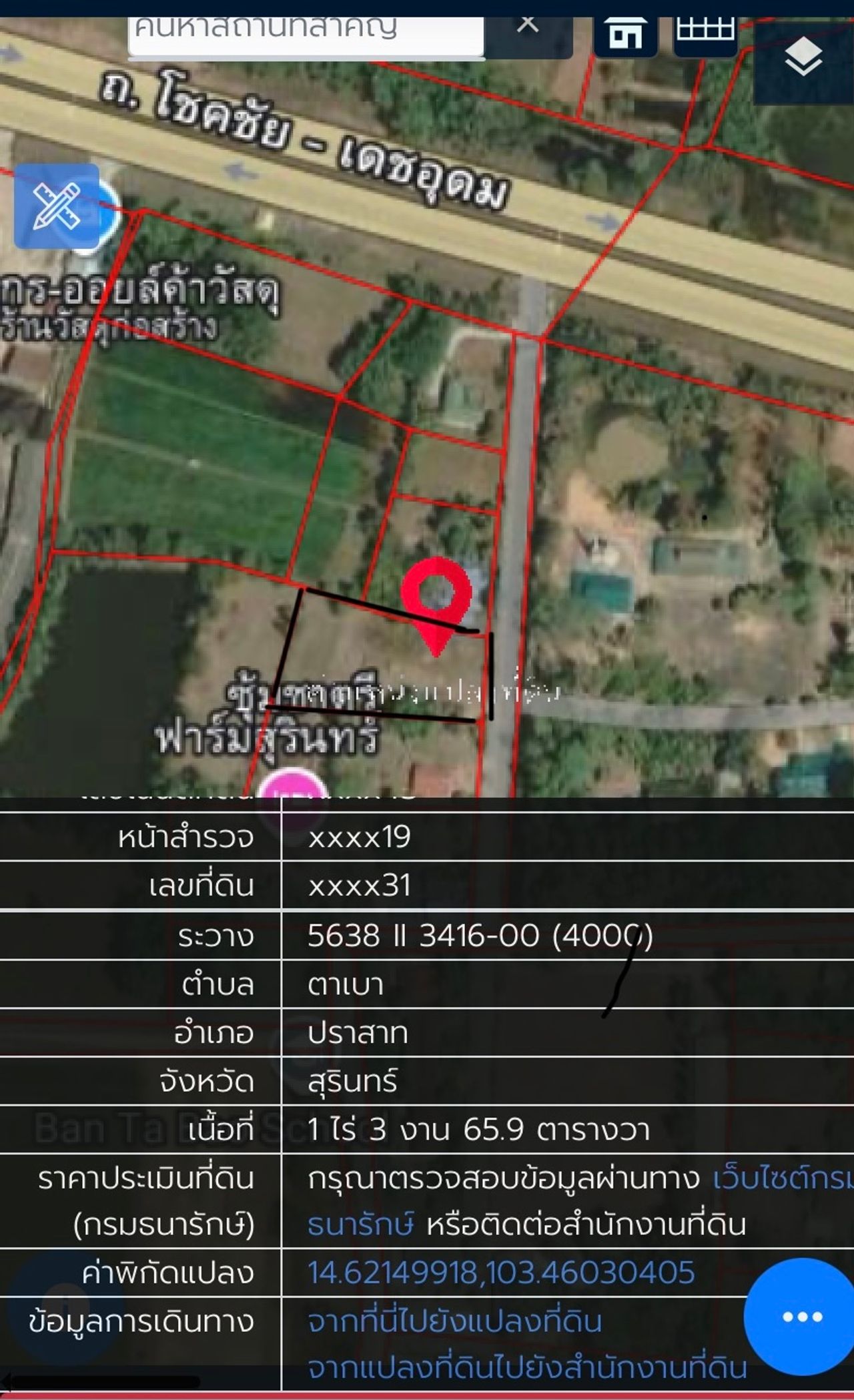 ขายที่อ.ปราสาท ต.ตาเบา เนื้อที่ 1 ไร่ 365 ตรว. ติดถนน ห่างถนนใหญ่แค่ 150 เมตร ใกล้วัดใกล้โรงเรียน สนใจราคาคุยกันได้ค่ะ