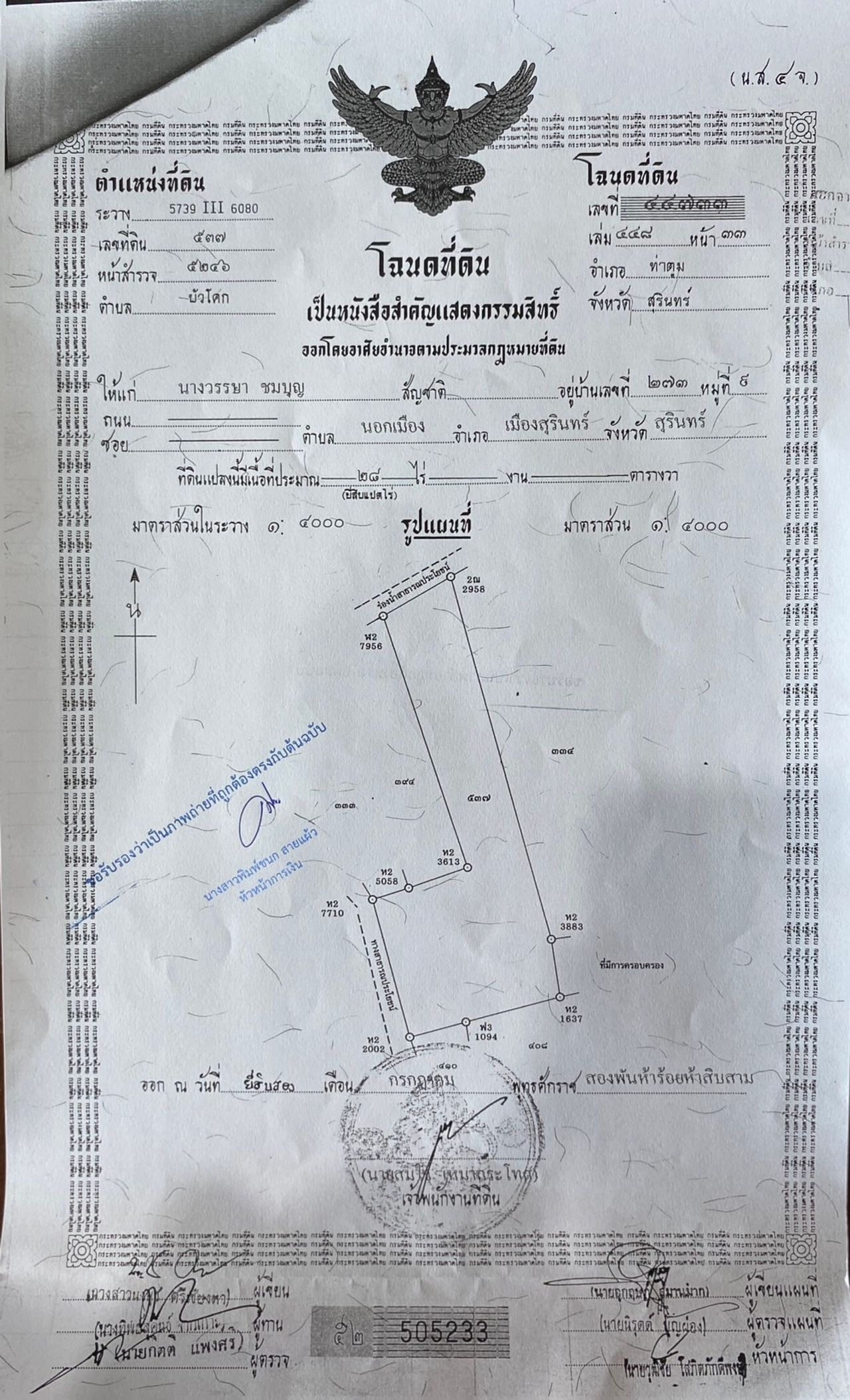 เนื้อที่ 62 ไร่โฉนดครุฑแดงมีบ่อน้ำมีลงปศุสัตว์มีเรียนพักอาศัยมีที่นาไร่ละ 230,000 บาท