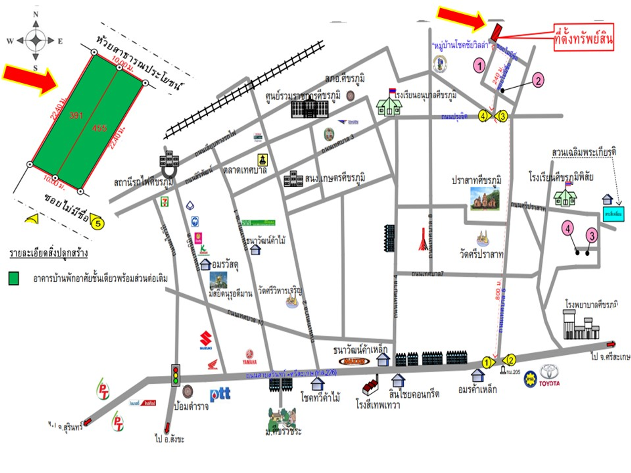 รายละเอียดเลขที่เอกสารสิทธิ์ : ที่ดินพร้อมสิ่งปลูกสร้าง 34501 สุรินทร์ อำเภอศีขรภูมิ ตำบลระแงง