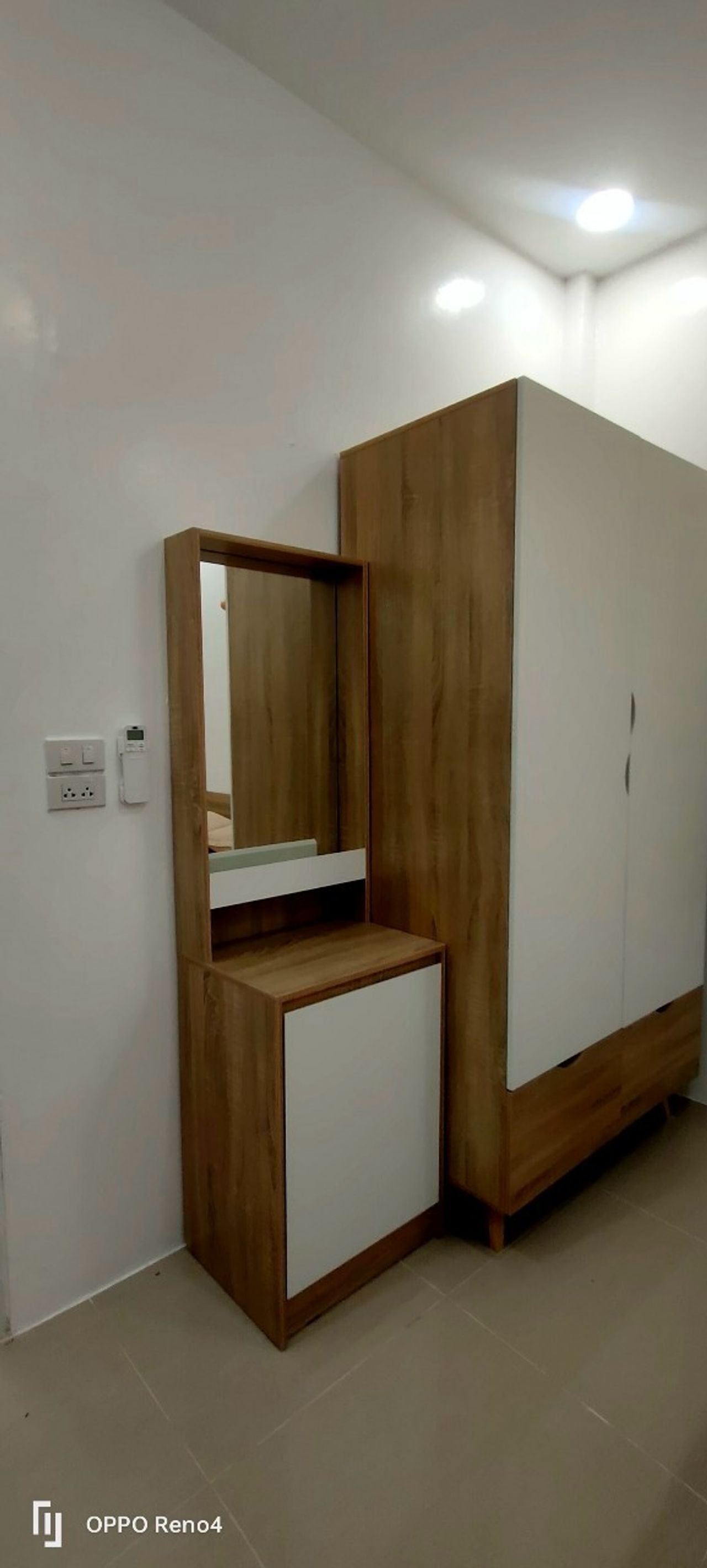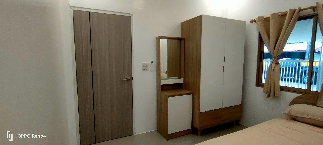 🛏️ ห้องนอน 1 ชุดเตียง 5 ฟุต ตู้เสื้อผ้า โต๊ะเครื่องแป้ง และเครื่องปรับอากาศ