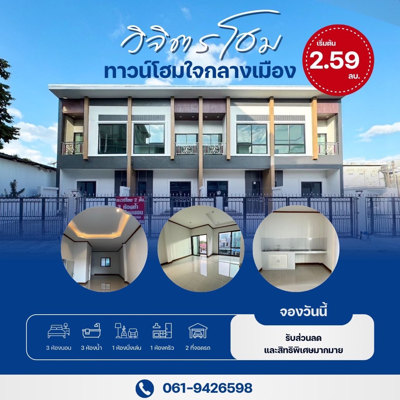 บ้านทาวน์โฮม 2 ชั้น ในตัวเมืองสุรินทร์ โครงการวิจิตรโฮม ราคา 2.59 ลบ.