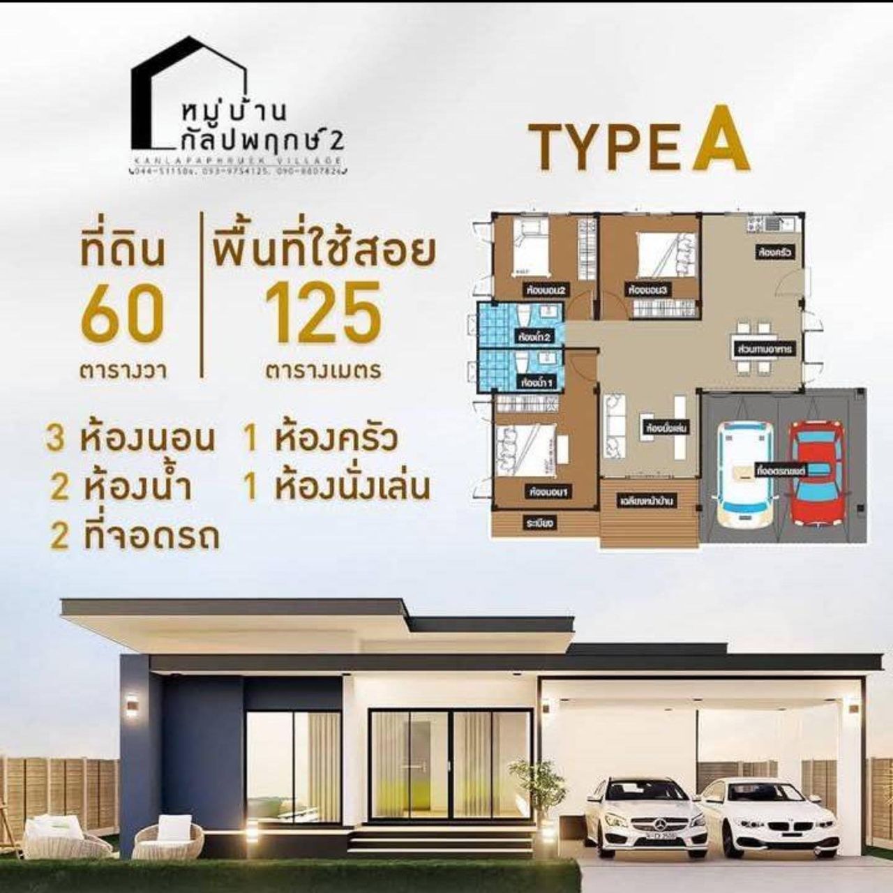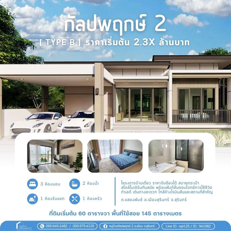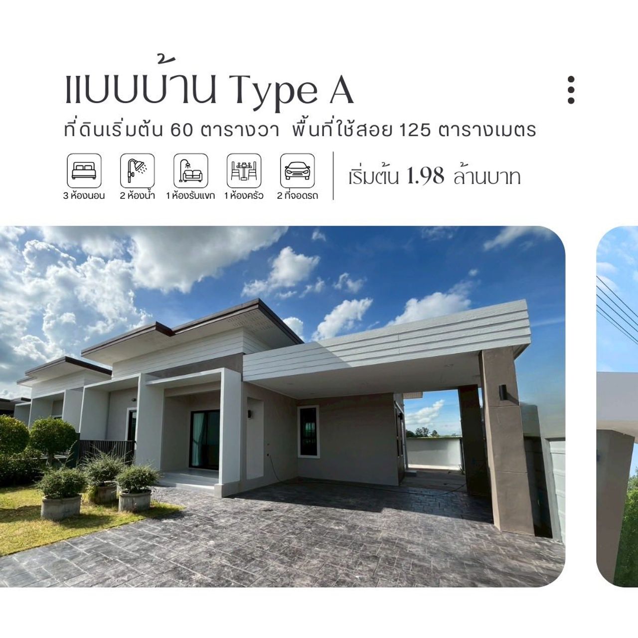 บ้านเดี่ยว ขนาด 3 ห้องนอน 2 ห้องน้ำ จอดรถ 2 คัน สนามหญ้าหน้าบ้าน