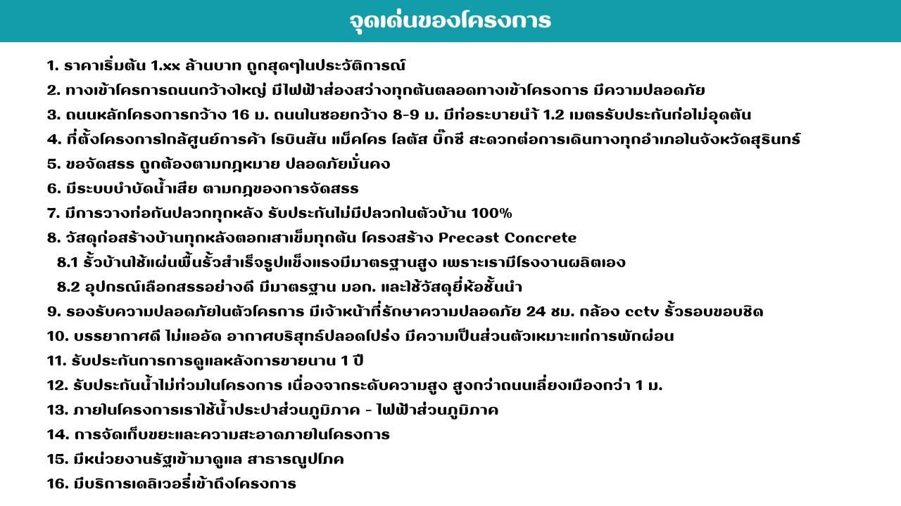 ถนนหลักกว้าง 16 เมตร ถนนรองกว้าง 8-9 เมตร ใหญ่กว่าทุกโครงการในจังหวัดสุรินทร์