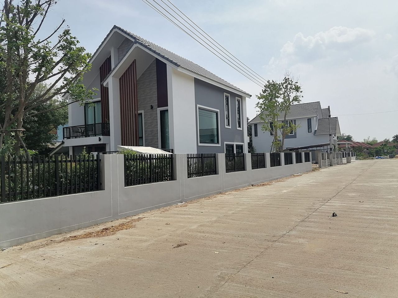 คาเฟ่ หน้าหมู่บ้าน บ้านที่ทิ้งระยะห่าง ความเป็นส่วนตัวสูง ใกล้ชิดธรรมชาติ ใกล้เมือง ถนนกว้าง 8เมตร สายไฟลอดใต้ดิน