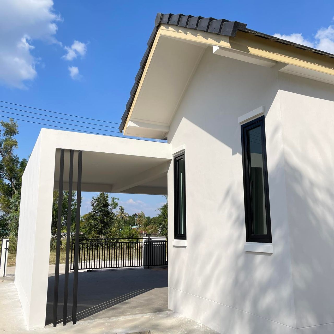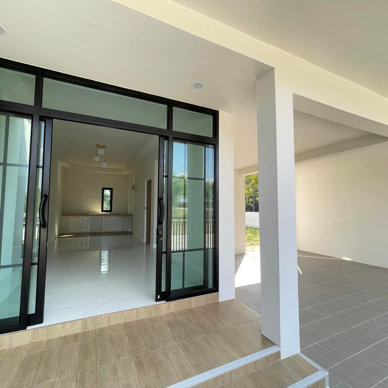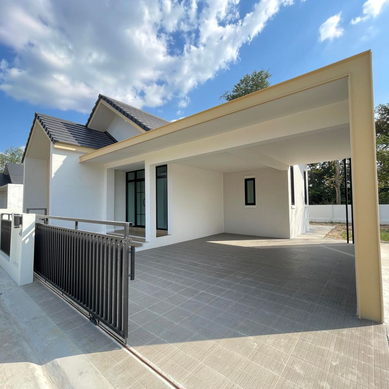 ปูกระเบื้องพื้นโรงจอดรถเต็มพื้นที่