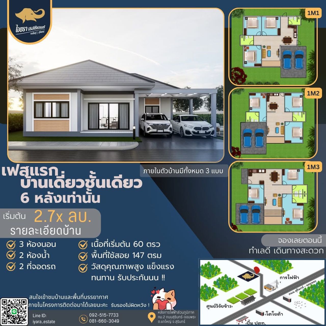 บ้านเดี่ยว เฟสแรก ชั้นเดียว 6 หลังแรก เริ่มต้น 2.79 ล้านบาท