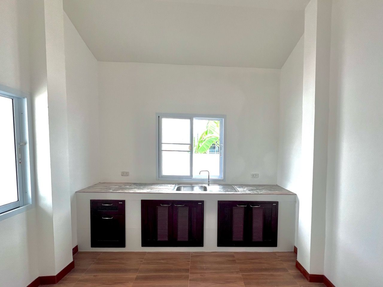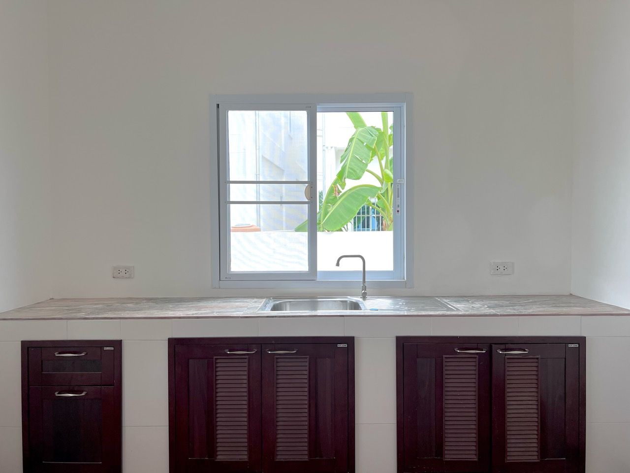 พร้อมทั้งเครื่องทำน้ำอุ่น ปั๊มน้ำ แท้งค์น้ำ เคาร์เตอร์ตู้ซิงค์น้ำในห้องครัว