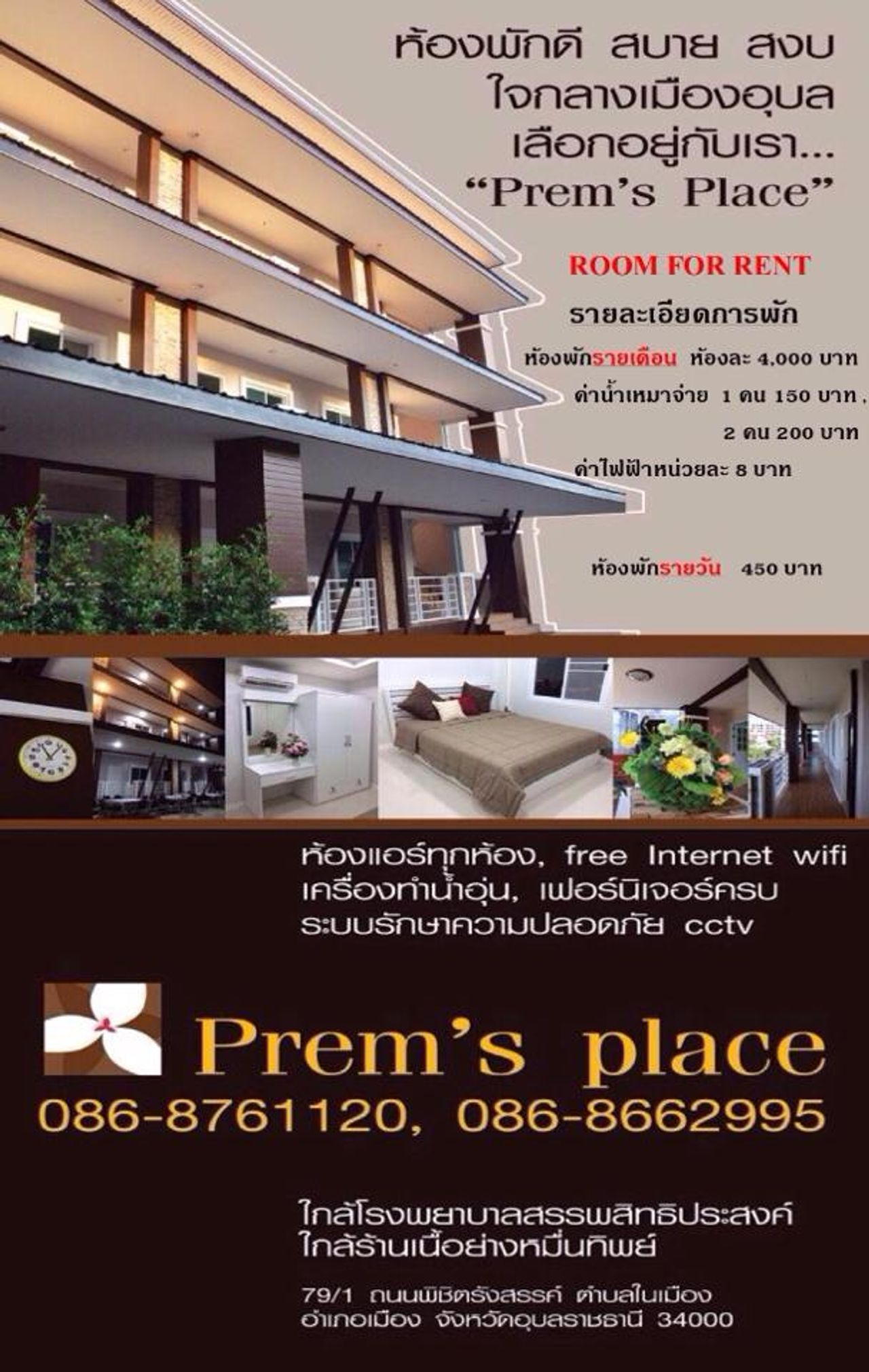 เปรม เพลส Prem's Place หอพักเปิดใหม่ มีทั้งรายวัน รายเดือน นะคะ ใกล้กับสถานที่หลายแห่ง