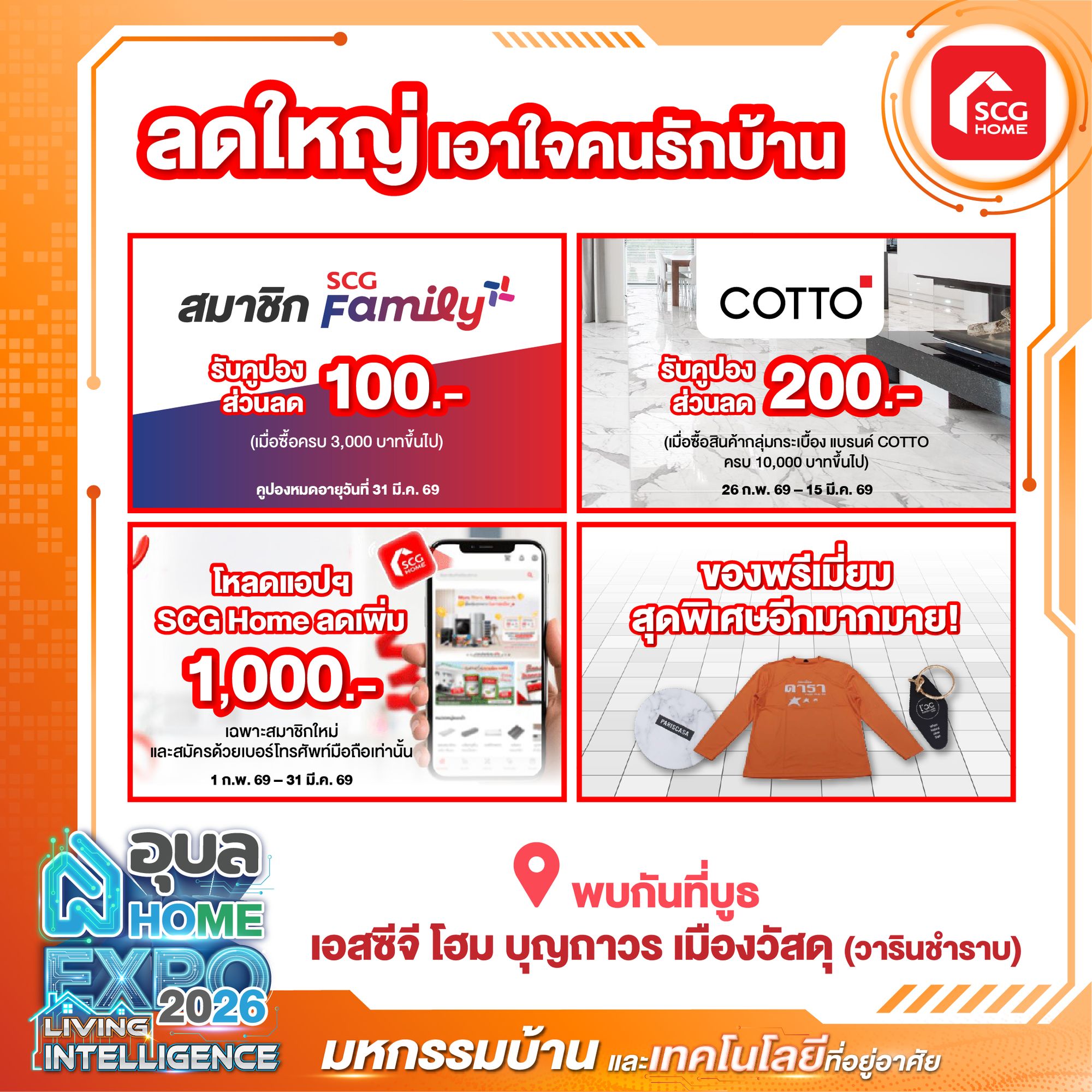ถ้าใครอยากเห็นของจริงหรืออยากเข้าไปปรึกษาแบบใกล้ชิด เตรียมตัวไปเจอกับพวกเขาได้ที่งาน Ubon Home Expo 2026 ณ ลานอะควาเรียม ชั้น 1 เซ็นทรัล อุบล ระหว่างวันที่ 26 กุมภาพันธ์ - 2 มีนาคม 2569 นี้ ใครไม่อยากพลาดสิทธิพิเศษดีๆ อย่าลืมแวะไปลงทะเบียนกันล่วงหน้าได้เลย