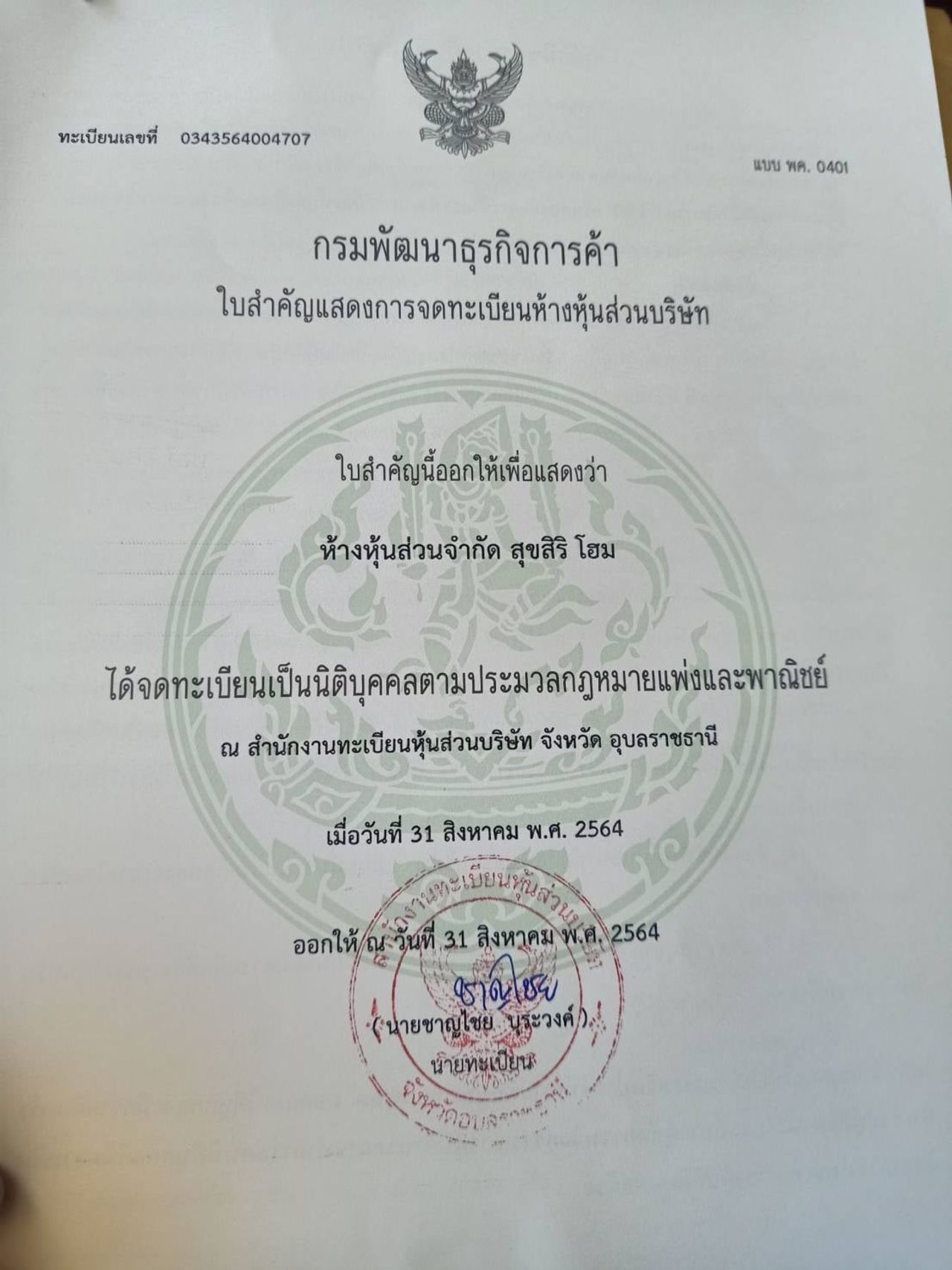 | ชื่อองค์กร | : สุขสิริโฮม |