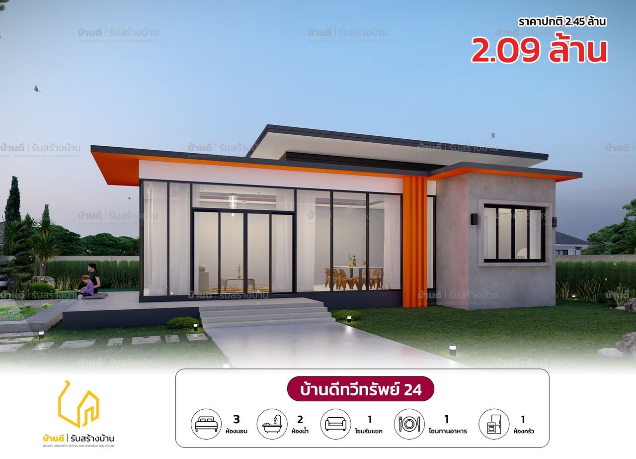 แบบบ้านทวีทรัพย์ 24 บ้านดี รับสร้างบ้าน - Bandee architecture Design and construction