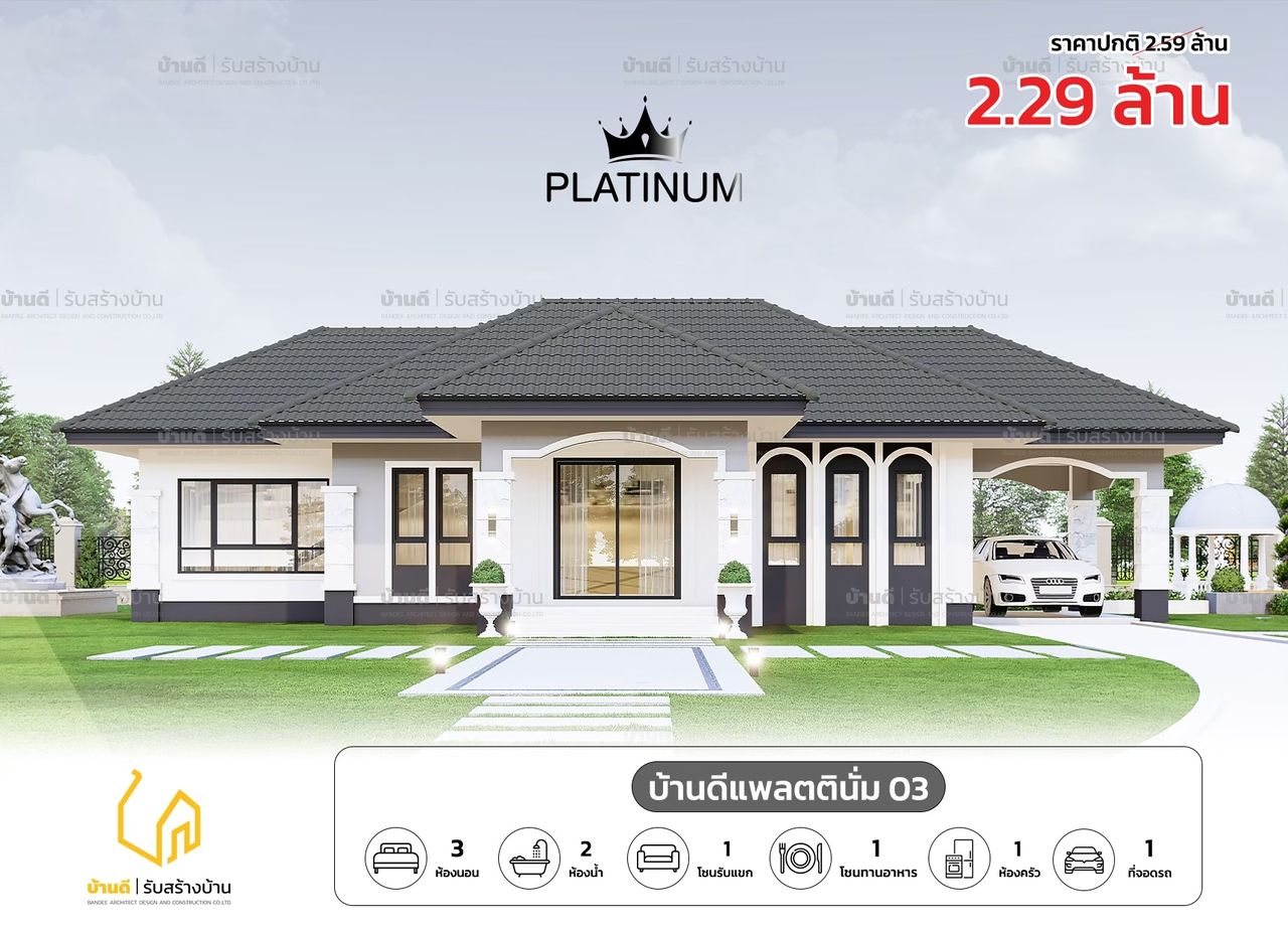 แบบบ้านแพลตตินั่ม 03 บ้านดี รับสร้างบ้าน - Bandee architecture Design and construction