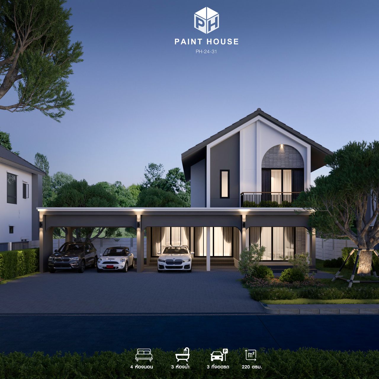 บ้านสไตล์โมเดิร์น ที่ออกแบบเพื่อการใช้ชีวิตที่ลงตัว ทันสมัยและเรียบง่าย โดดเด่นด้วยเส้นสายที่สะอาดตา ให้คุณได้สัมผัสความอบอุ่นในทุกมุมของบ้าน Paint House - รับสร้างบ้าน จะตอบโจทย์ทุกความต้องการของคุณได้อย่างสมบูรณ์แบบ