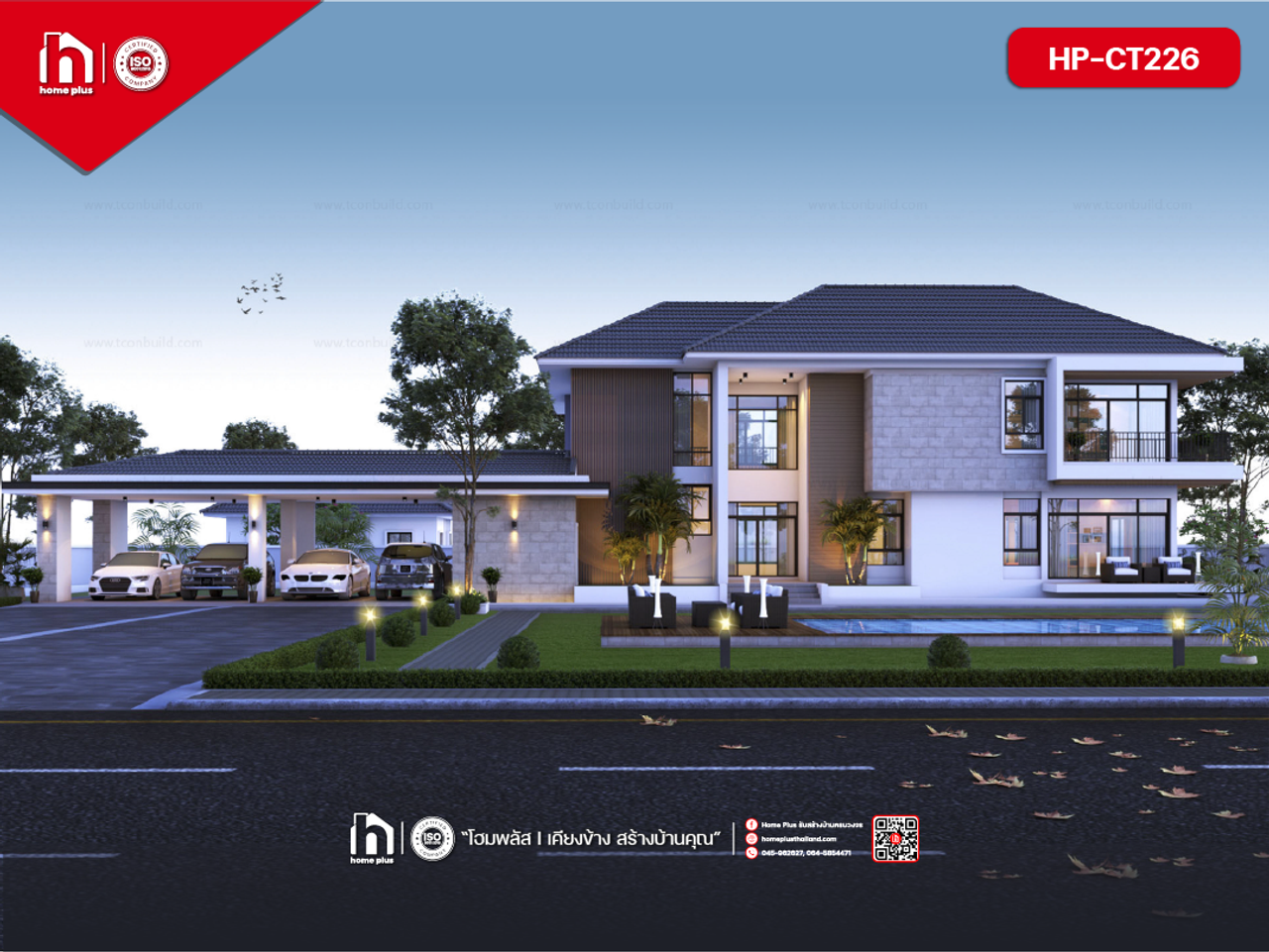 แบบบ้านคอนแทมโพรารี HP-CT226 โฮมพลัส รับสร้างบ้านครบวงจร - Home Plus