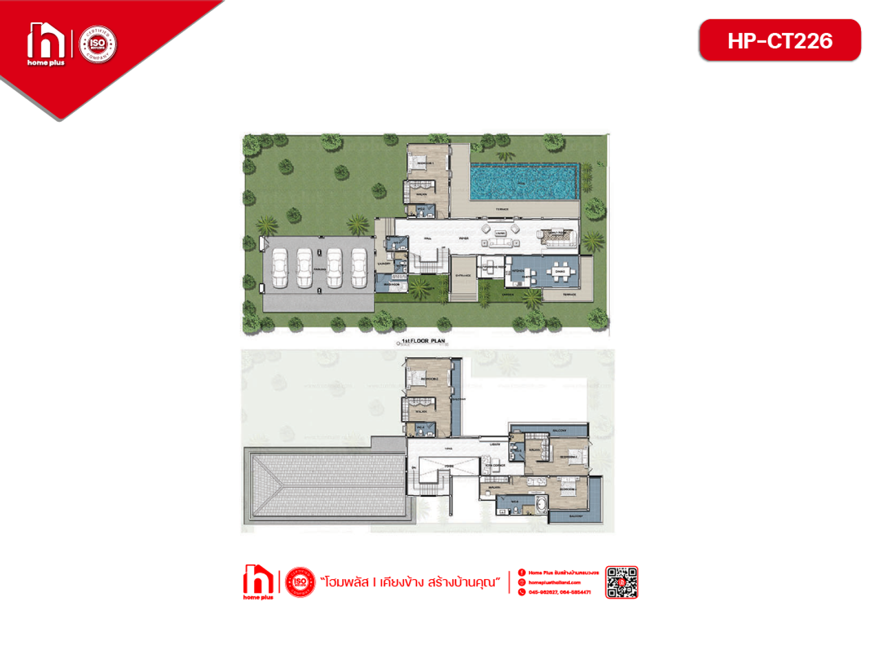 แบบบ้านคอนแทมโพรารี HP-CT226 โฮมพลัส รับสร้างบ้านครบวงจร - Home Plus คอนเทมโพรารี่