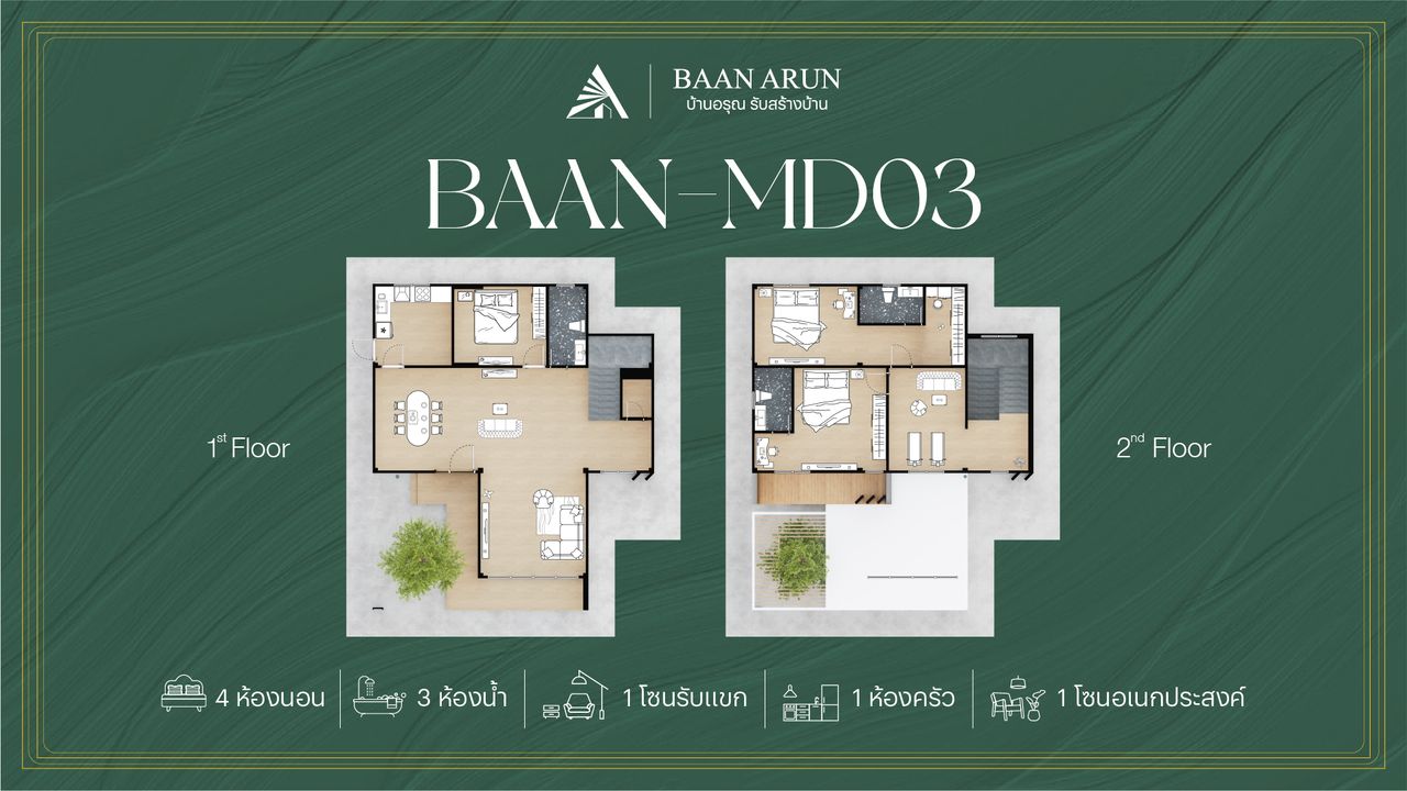 บ้านอรุณ แบบบ้านโมเดิร์น - BAAN-MD03 บ้านอรุณ รับสร้างบ้าน - BaanArun HomeBuilding โมเดิร์น