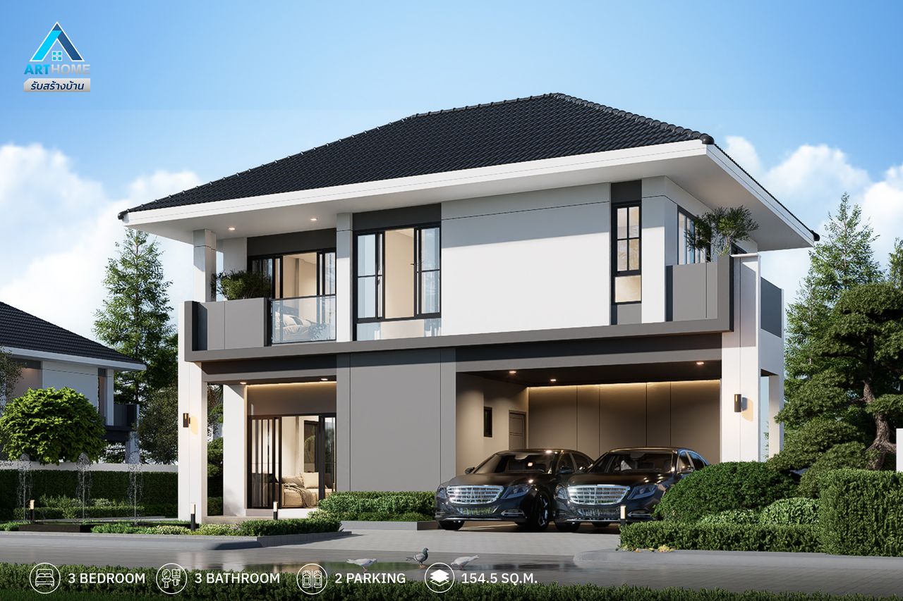 แบบบ้านยอดนิยม ฟังก์ชั่น 3ห้องนอน 3ห้องน้ำ 2ที่จอดรถ พื้นที่ 154.5 ตร.ม. ราคาพิเศษ จำกัดสิทธ์เพียง 3 หลังเท่านั้น