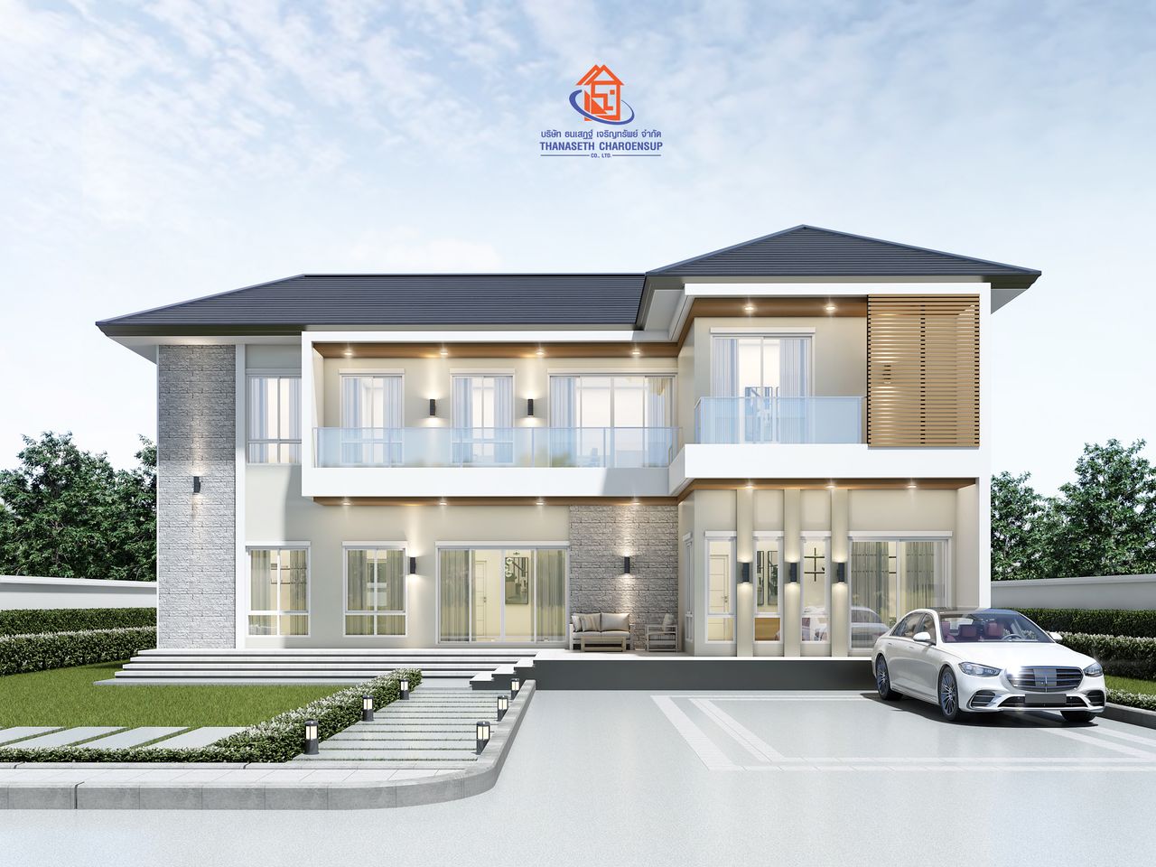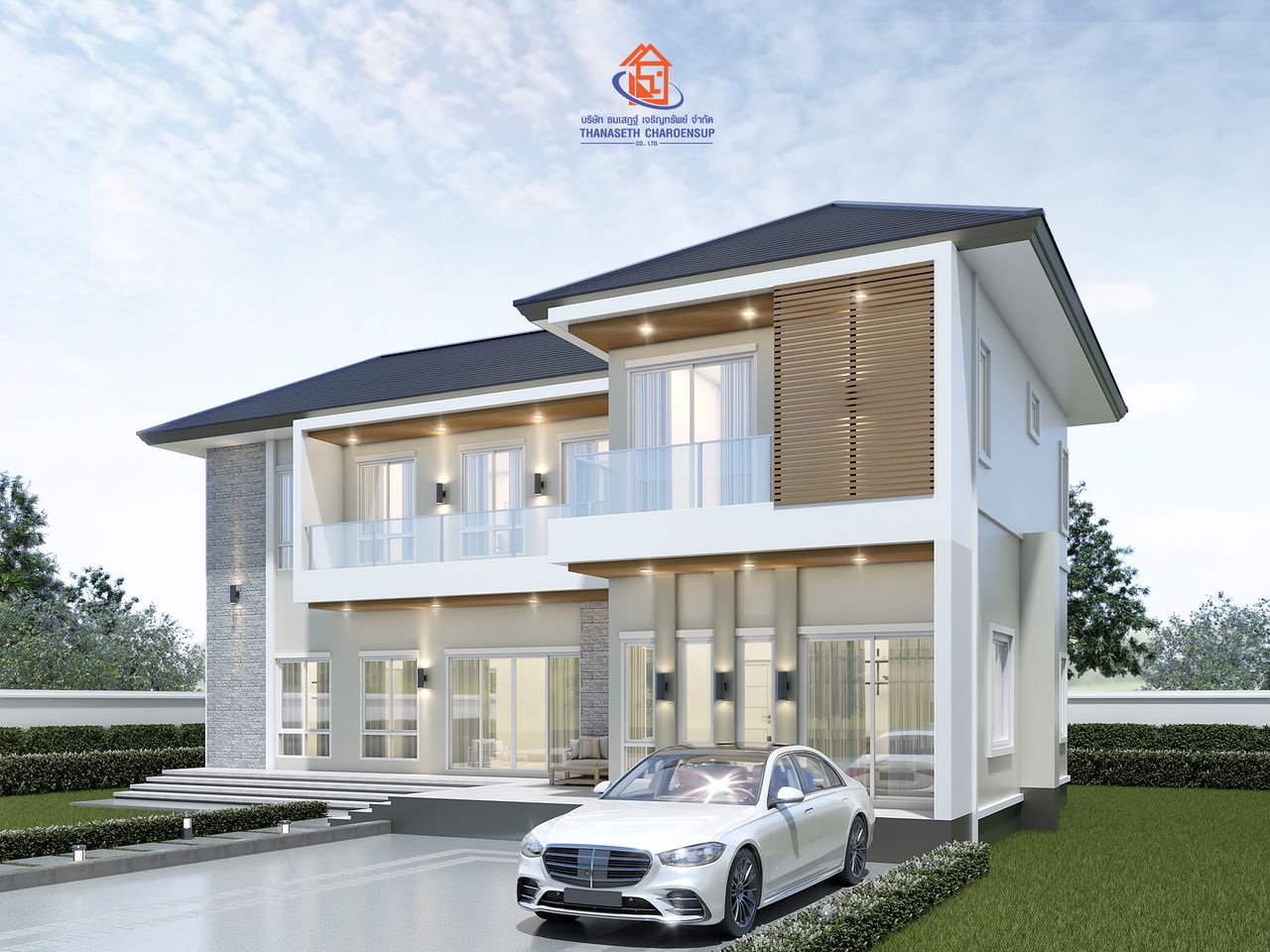 แบบบ้านTS-100 สไตล์ โมเดิร์นร่วมสมัย บ้านเดี่ยวสองชั้น
