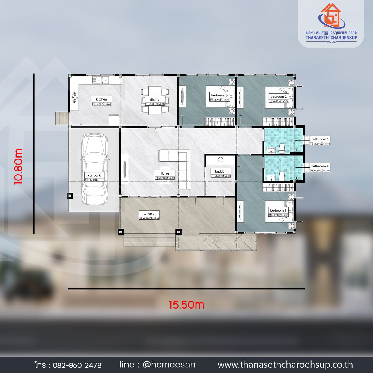 ราคาเริ่มต้น 2,900,000 บาท (ราคาอาจมีการเปลี่ยนเเปลงได้ตามราคาวัสดุการก่อสร้าง)