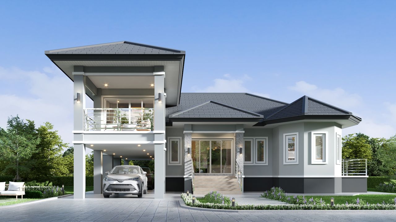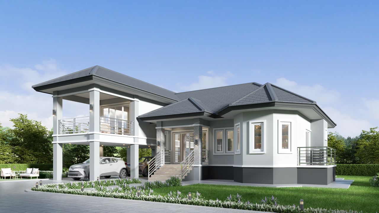 แบบบ้าน TS-97 สไตล์คอนเทนโพรารี่ บ้านเดี่ยวชั้นครึ่ง