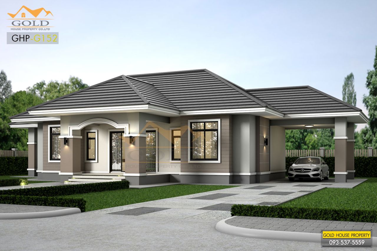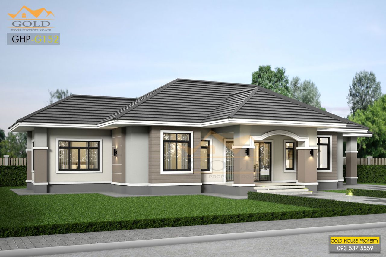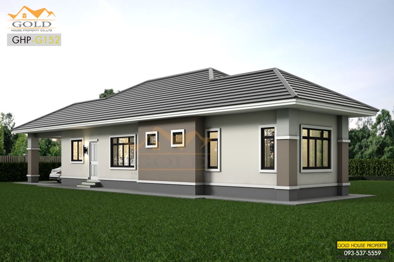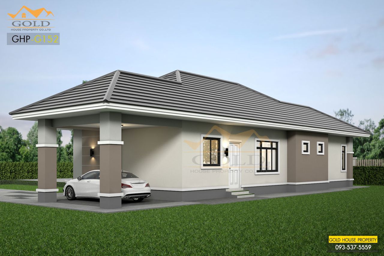 แบบบ้าน GHP-G152 คอนเทมโพรารี่ ฟังก์ชั่น : 1 ชั้น 3 ห้องนอน 2 ห้องน้ำ 1 ห้องครัว 1 ห้องรับแขก 1 ที่จอดรถ
