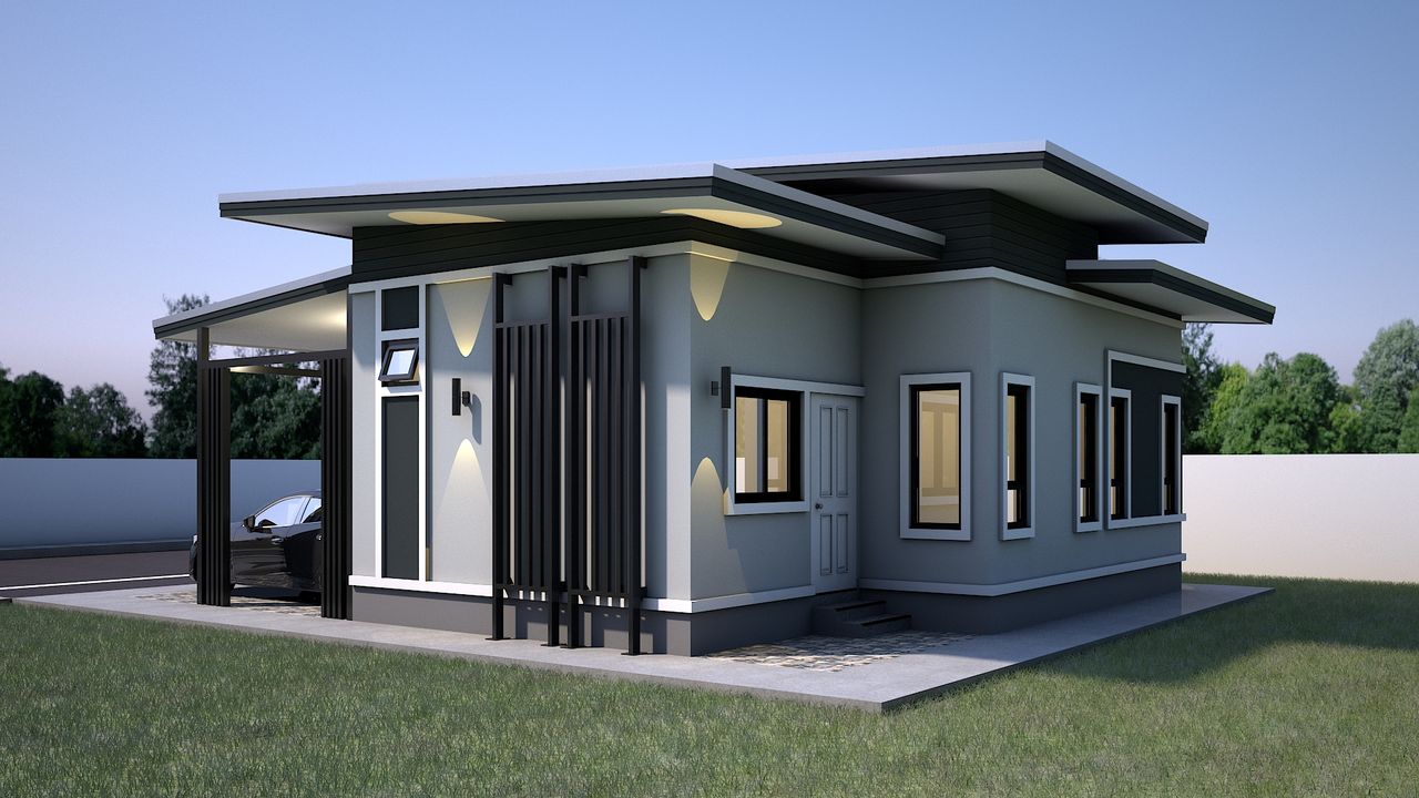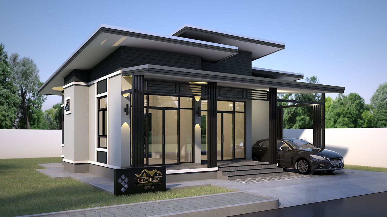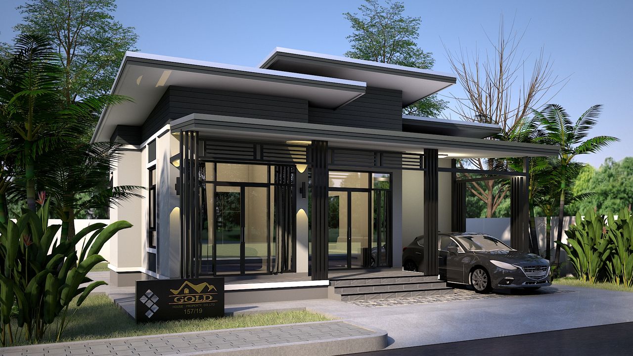 แบบบ้าน GHP379 โมเดิร์น ฟังก์ชั่น : 1 ชั้น 3 ห้องนอน 2 ห้องน้ำ 1 ห้องครัว 1 ห้องรับแขก 1 ที่จอดรถ